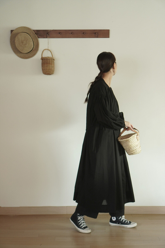 얇은 허리끈을 이용해 원하는 실루엣으로 연출이 가능합니다