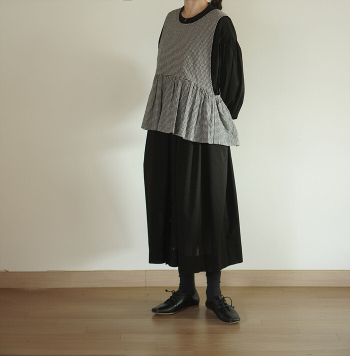 밑단의 시접을 넉넉히 주어 실루엣의 안정감을 주었습니다