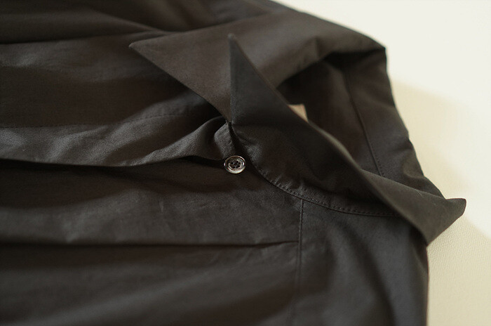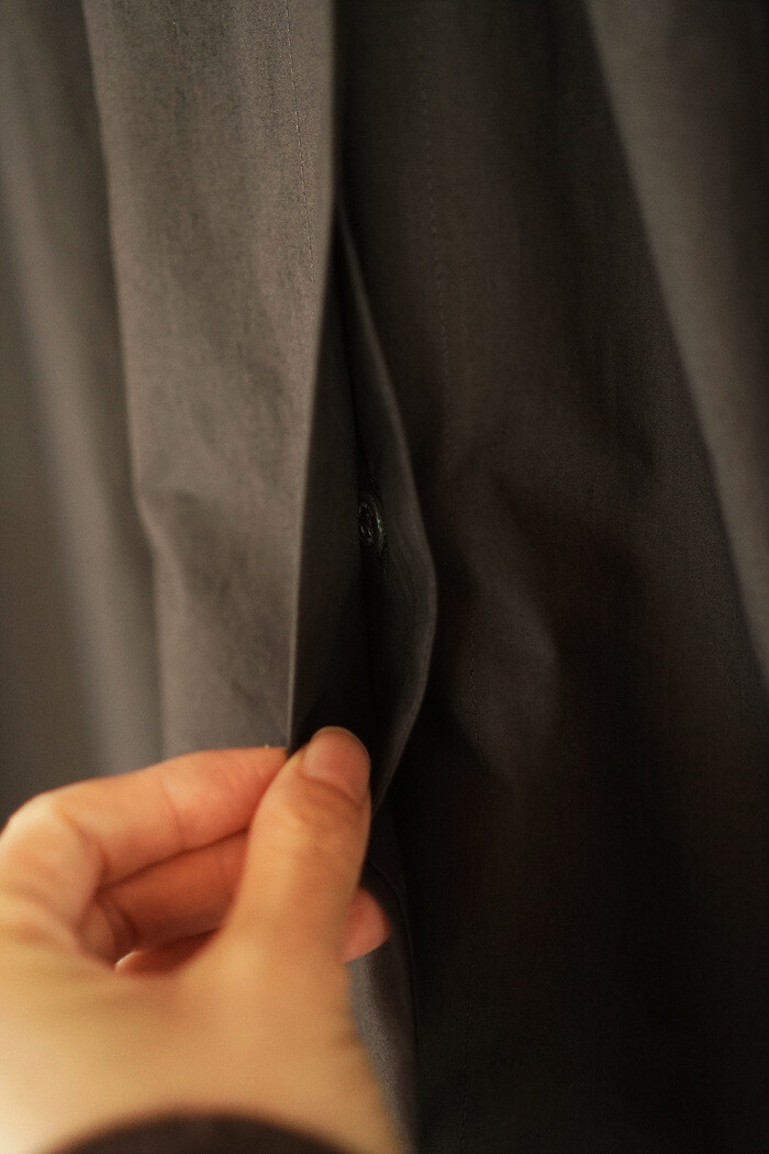 첫번째 단추는 단추고리로 카라 속에서 마감됩니다.