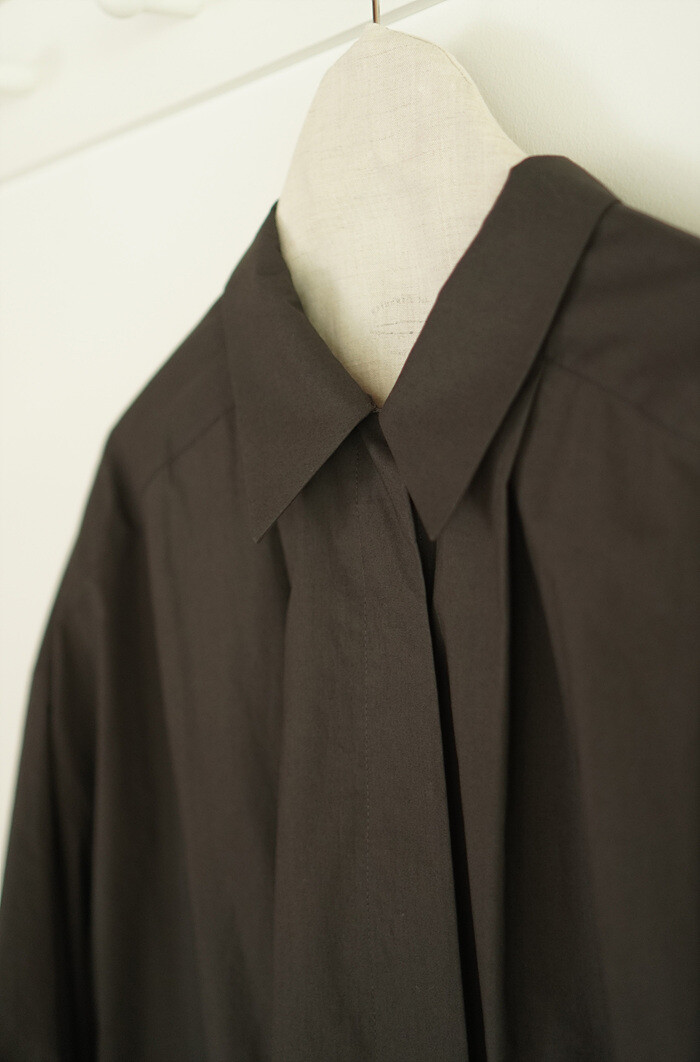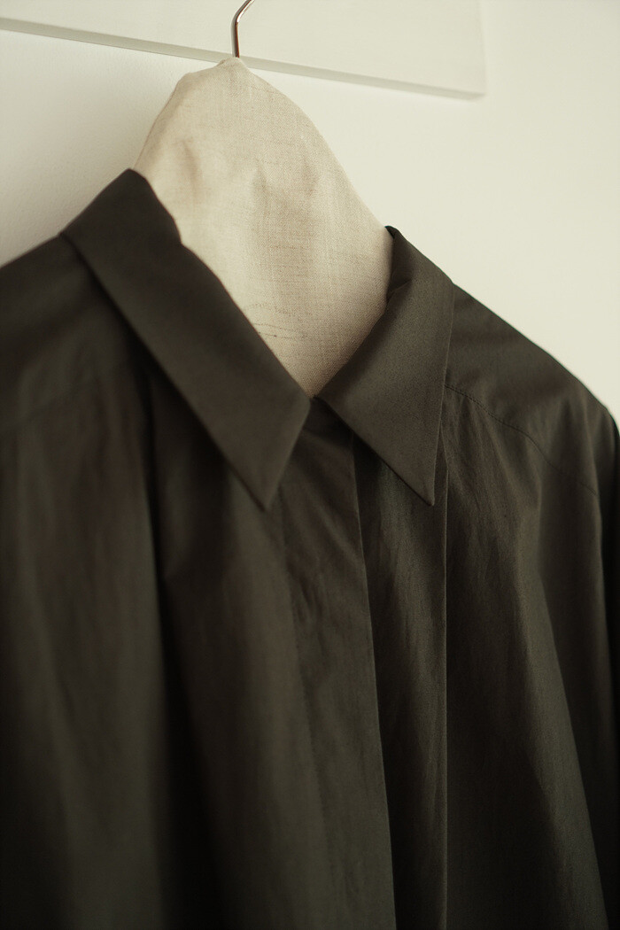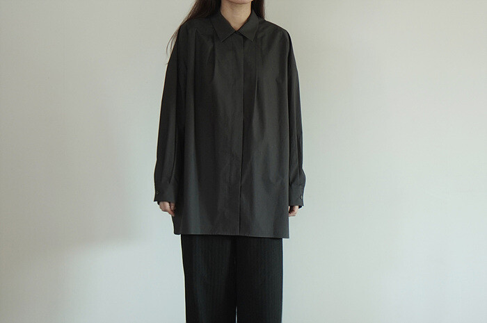 구조적인 실루엣을 지닌 박시핏의 셔츠입니다.