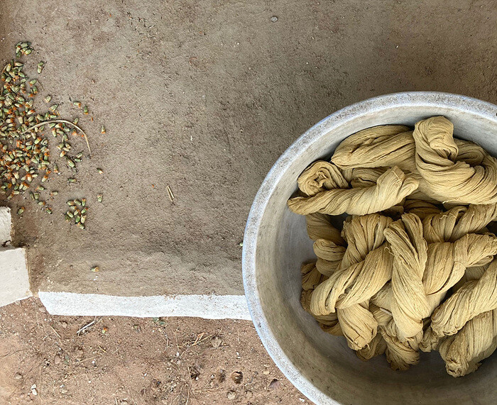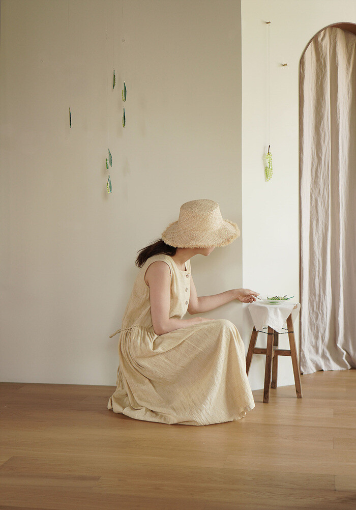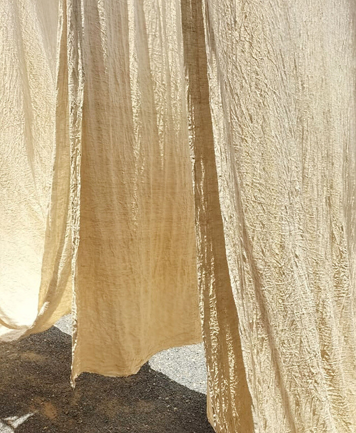 매리골드로 천연엽색을 해서 은은한 머스타드 빛깔을 얻어