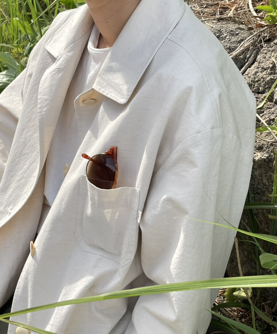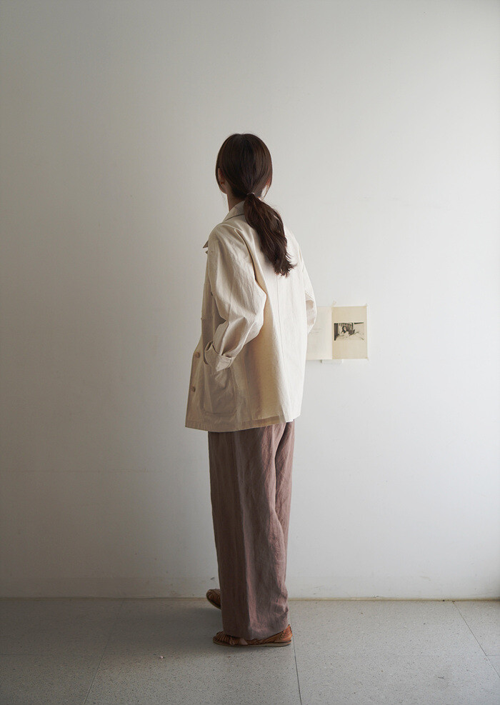 홑겹자켓으로 사각의 스티치가 뒷부분에도 드러나