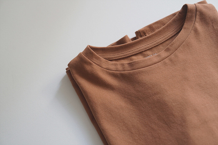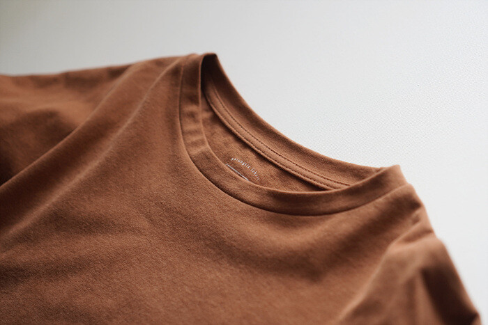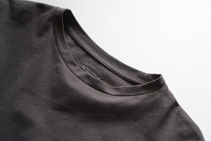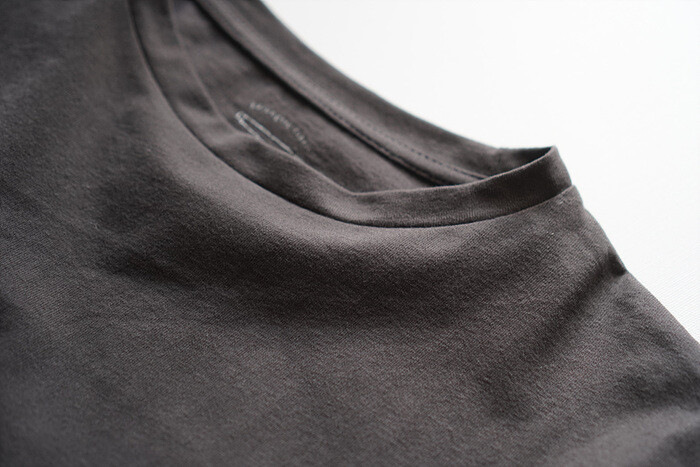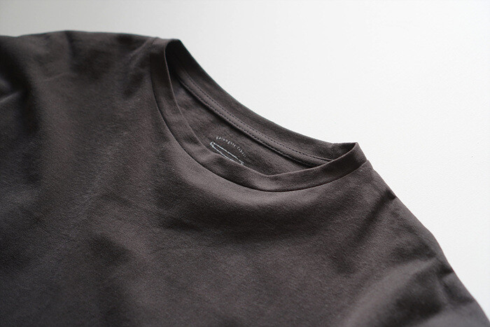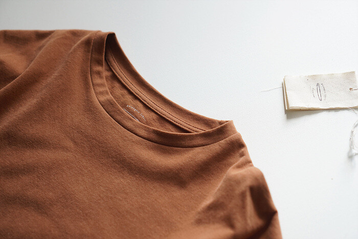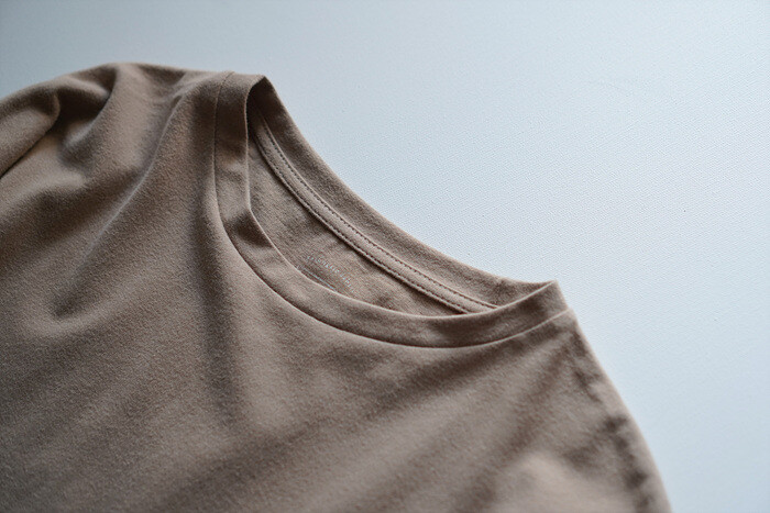 목을 감싸주는 편안한 라운드 넥이에요.