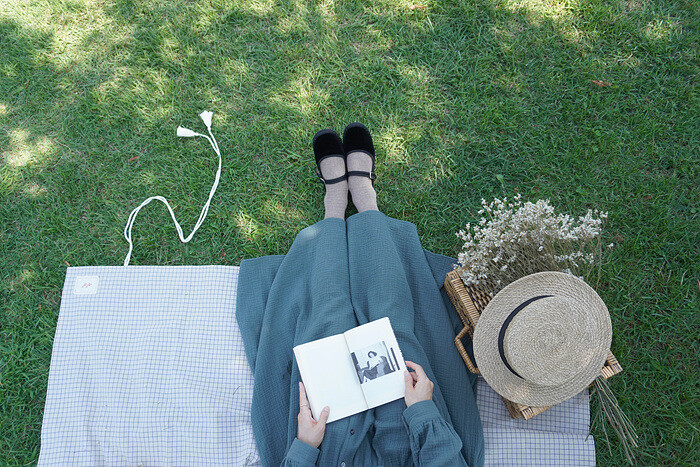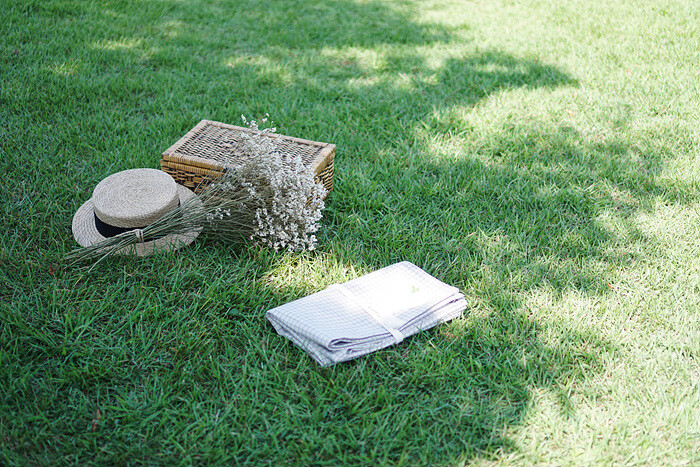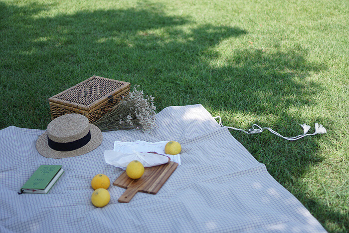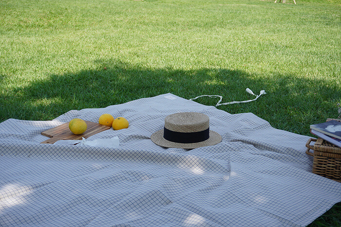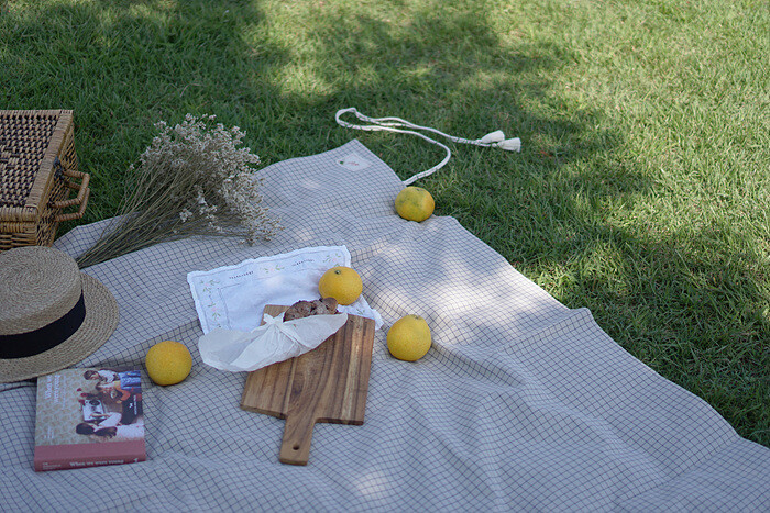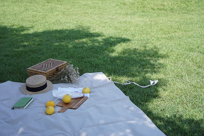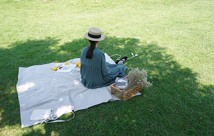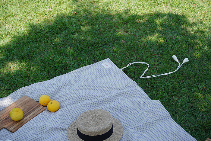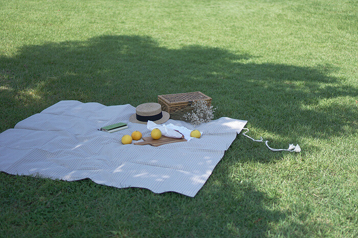 가볍게 피크닉 매트를 하나 꺼내어 들고.