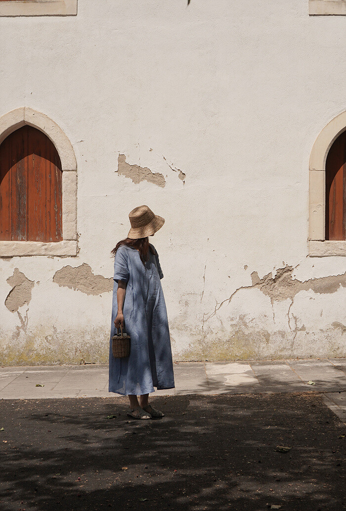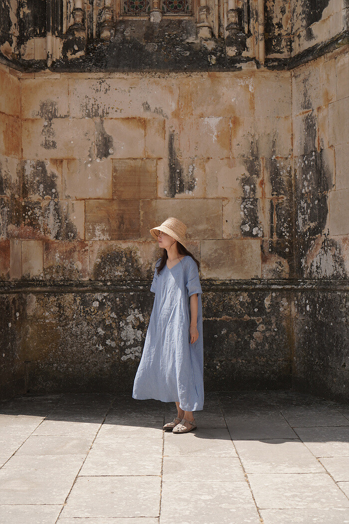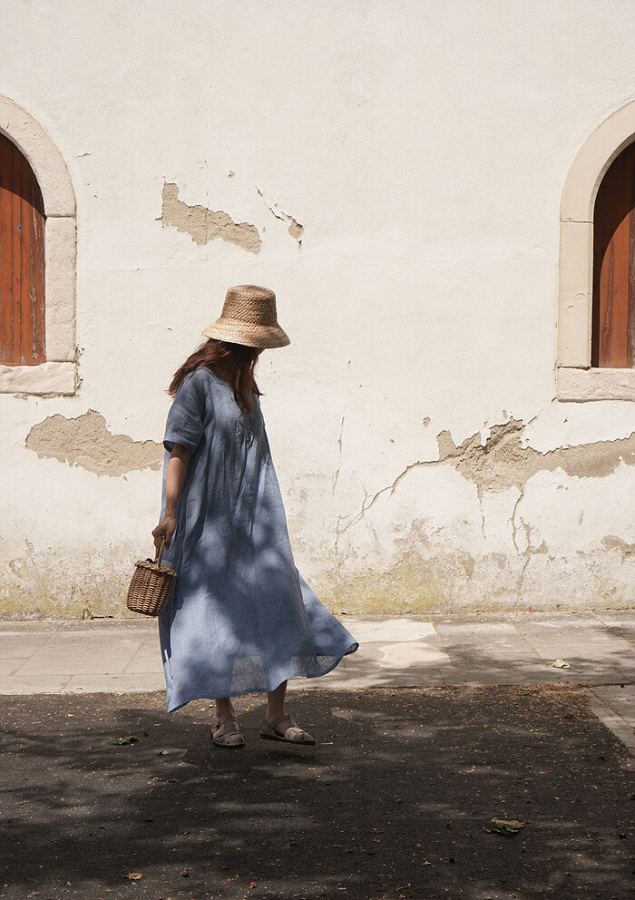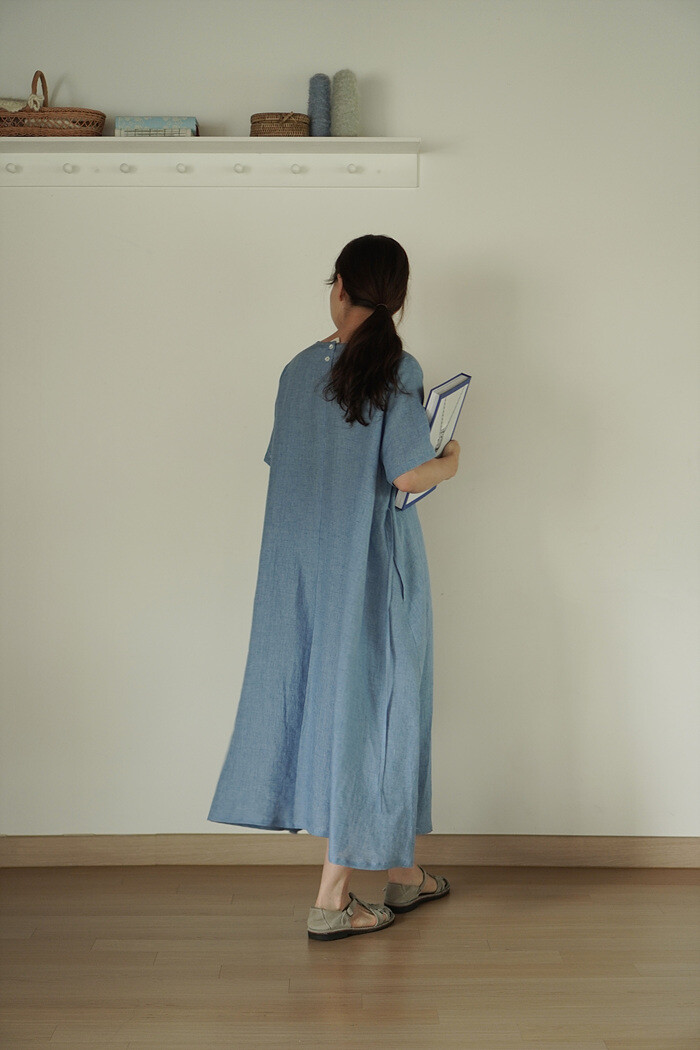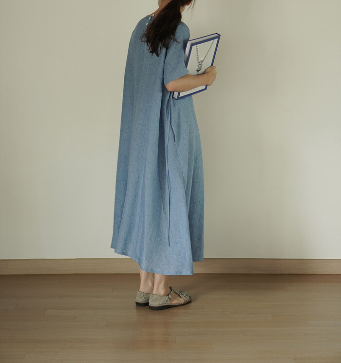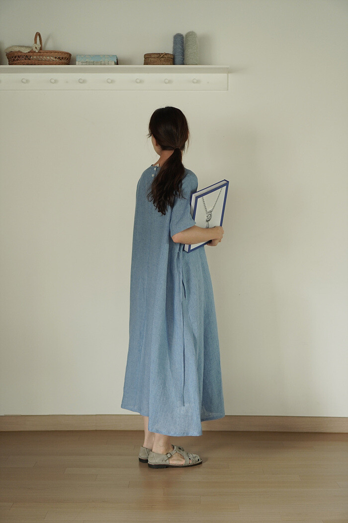 Blue linen dress
