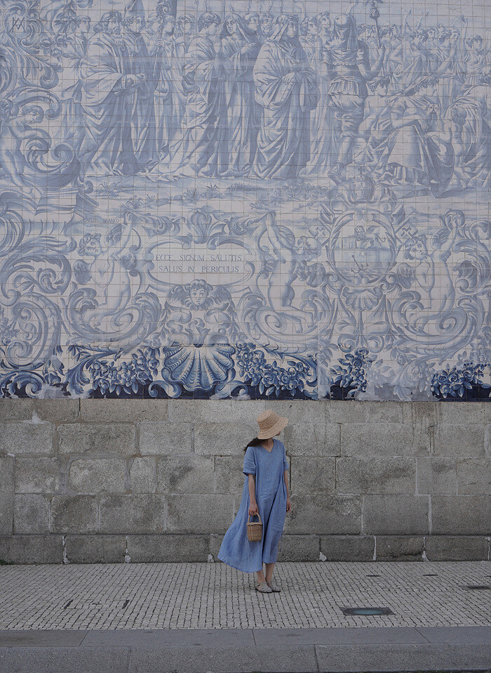 포르투의 아줄레주 앞에서 입었습니다.