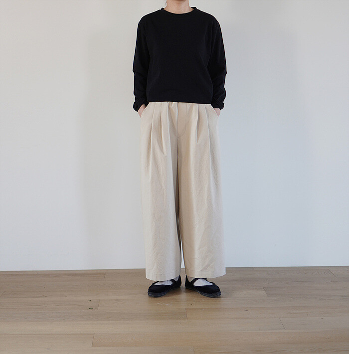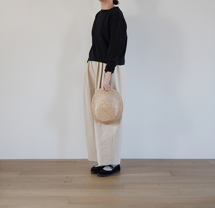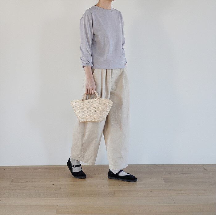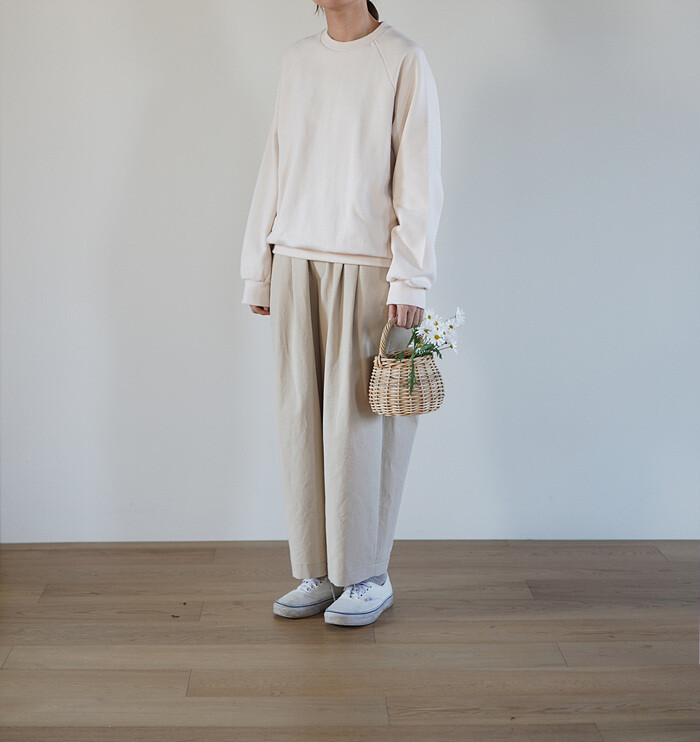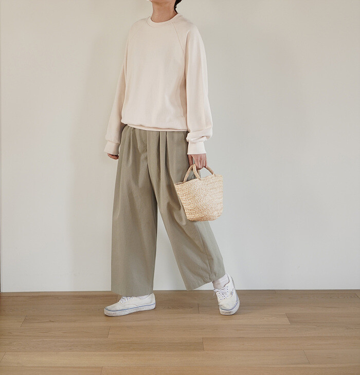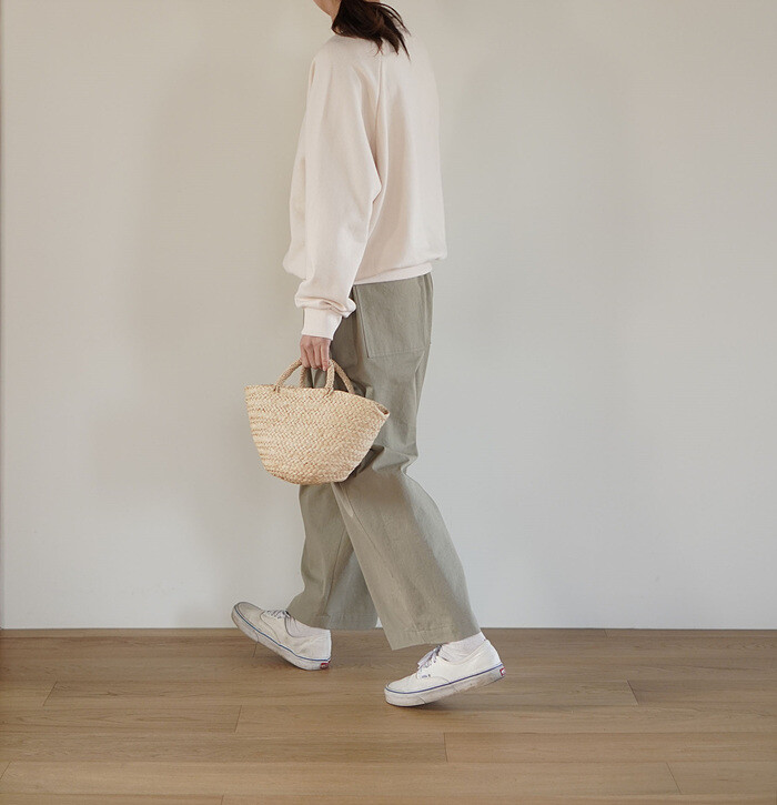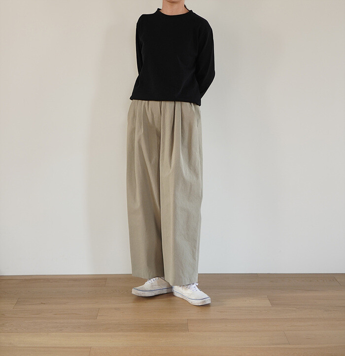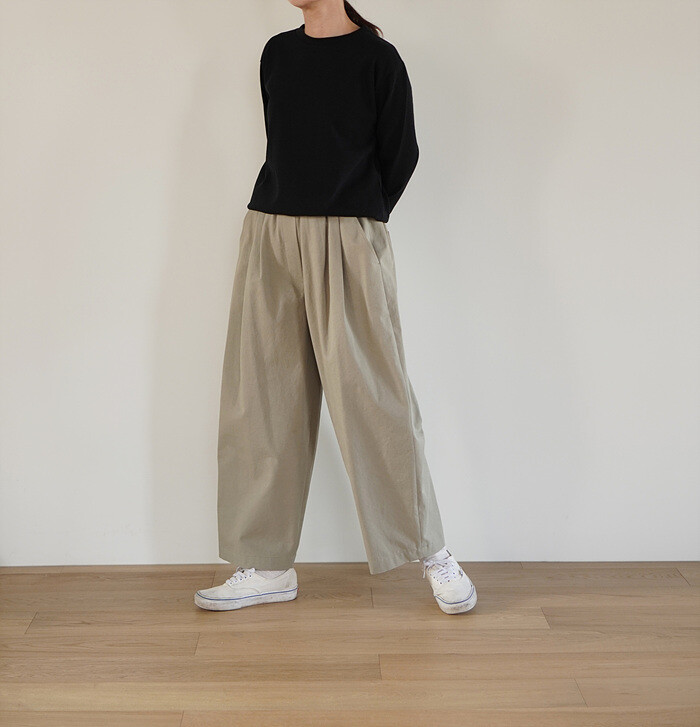 밑단은 살짝 좁아지는 듯한 느낌이 드는 실루엣입니다.