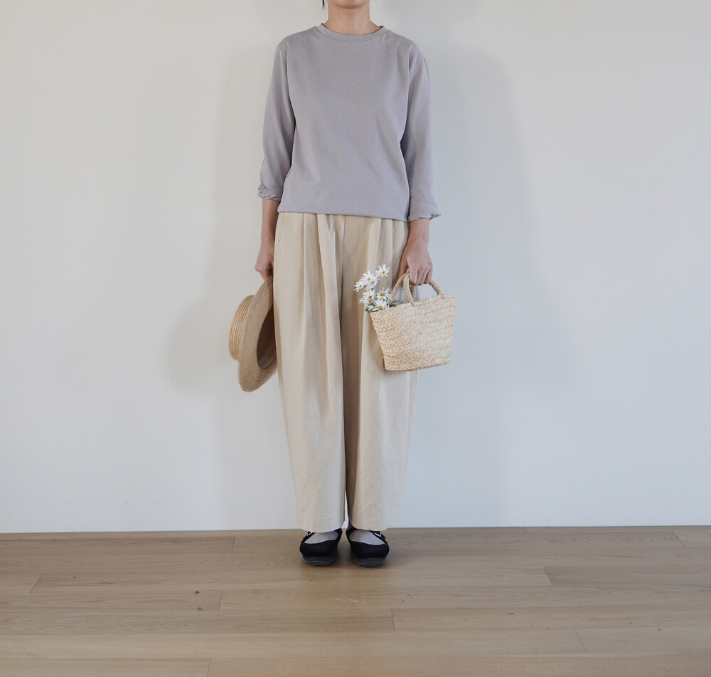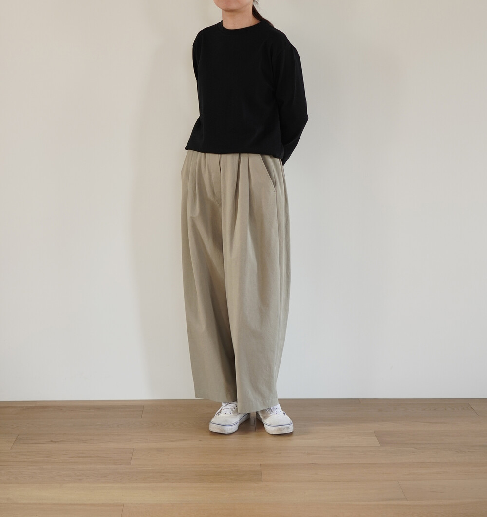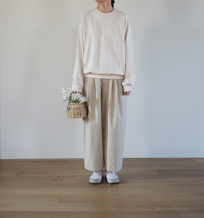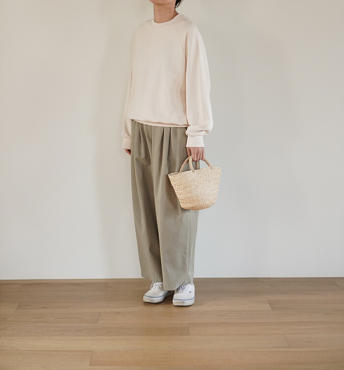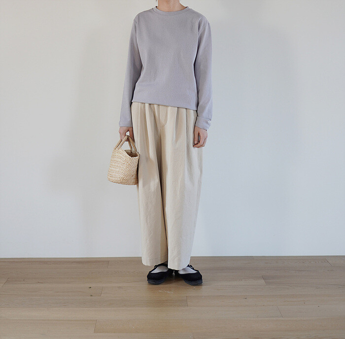 밑단은 살짝 좁아지는 듯한 느낌이 드는 실루엣입니다.