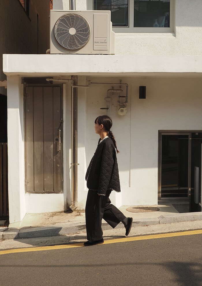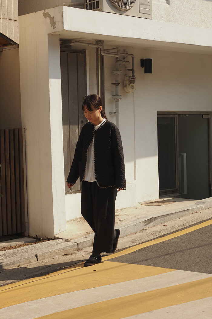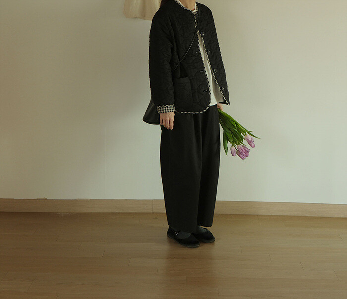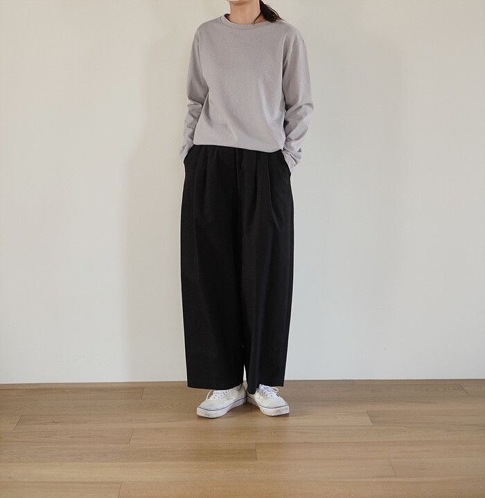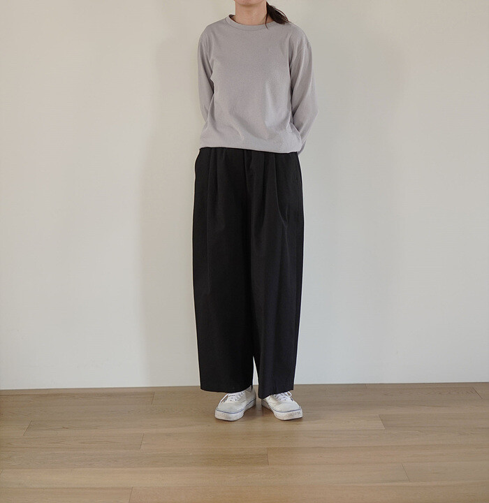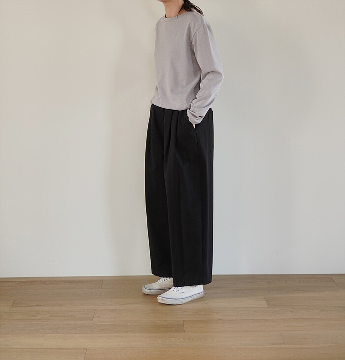 밑단은 살짝 좁아지는 듯한 느낌이 드는 실루엣입니다.