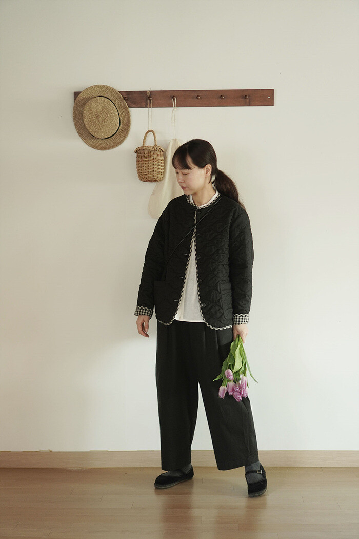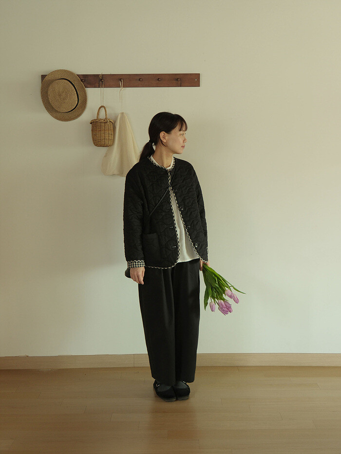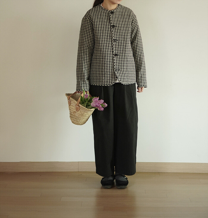 퀼팅 양면 자켓, 체크얼굴과 함께.