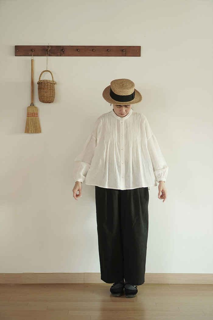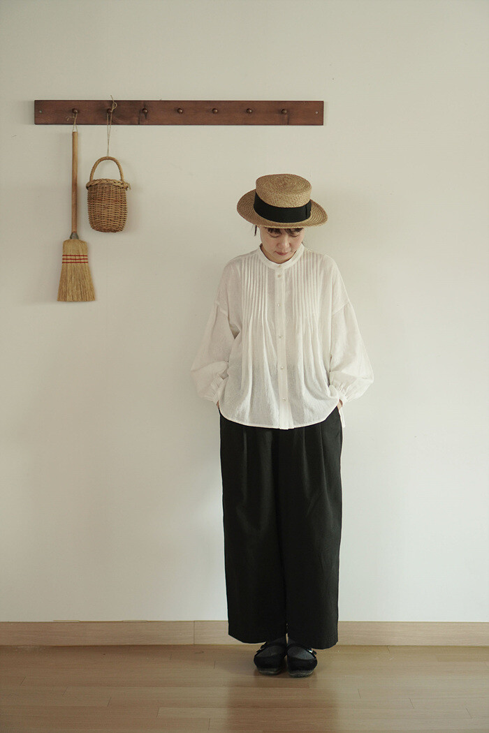 아이보리 컬러의 핀턱 블라우스와 함께.