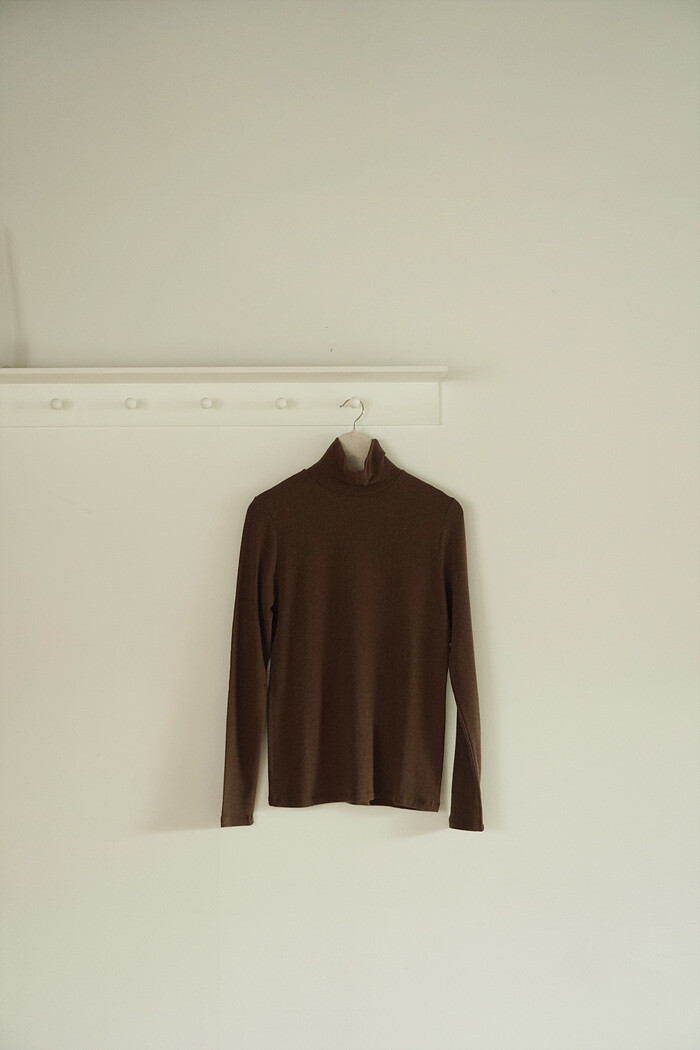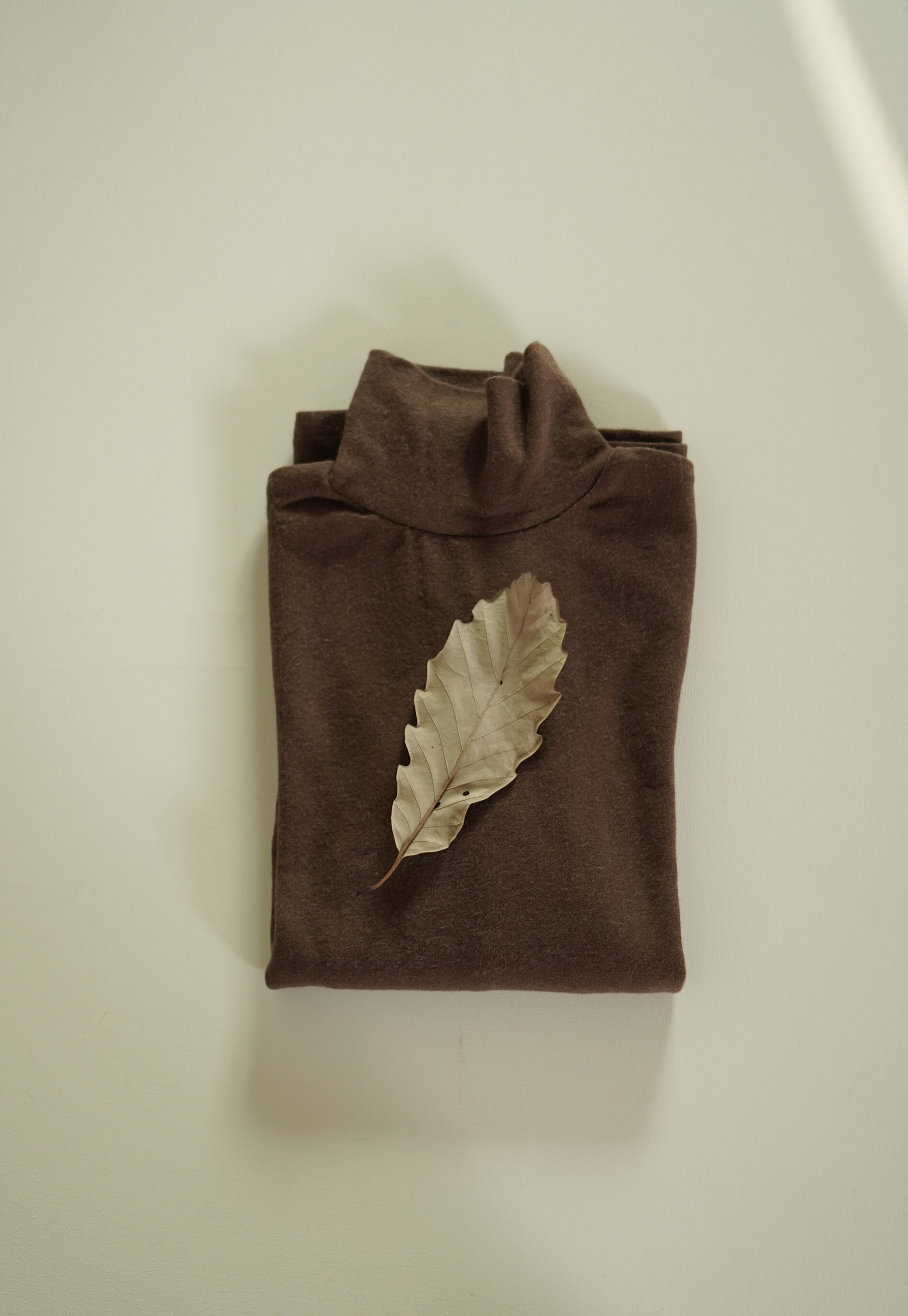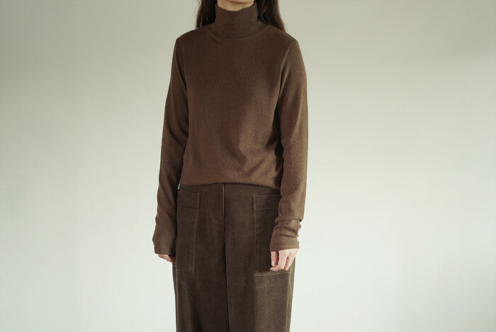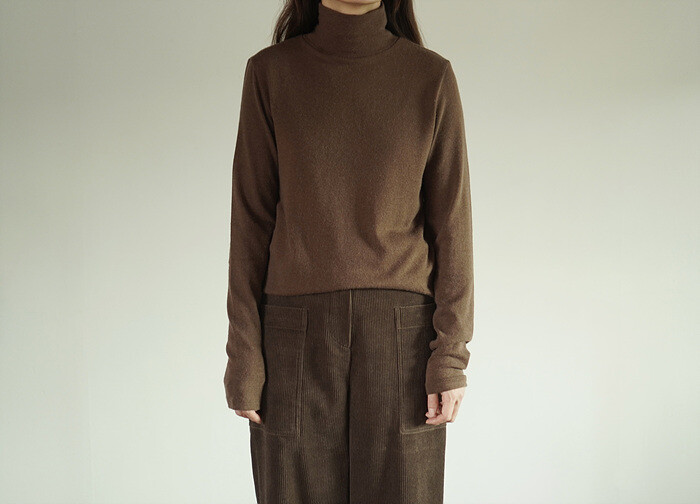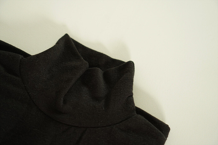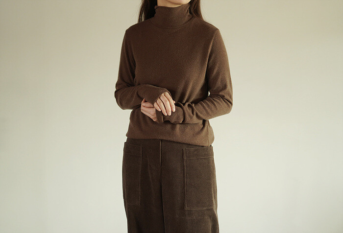 두겹의 터틀넥으로 목에 밀착되어 보온성이 좋은 목입니다.