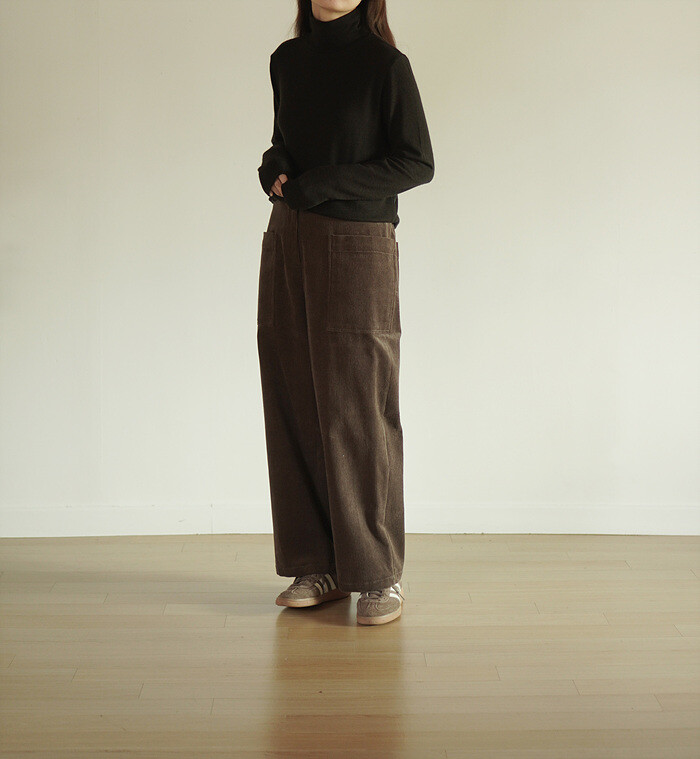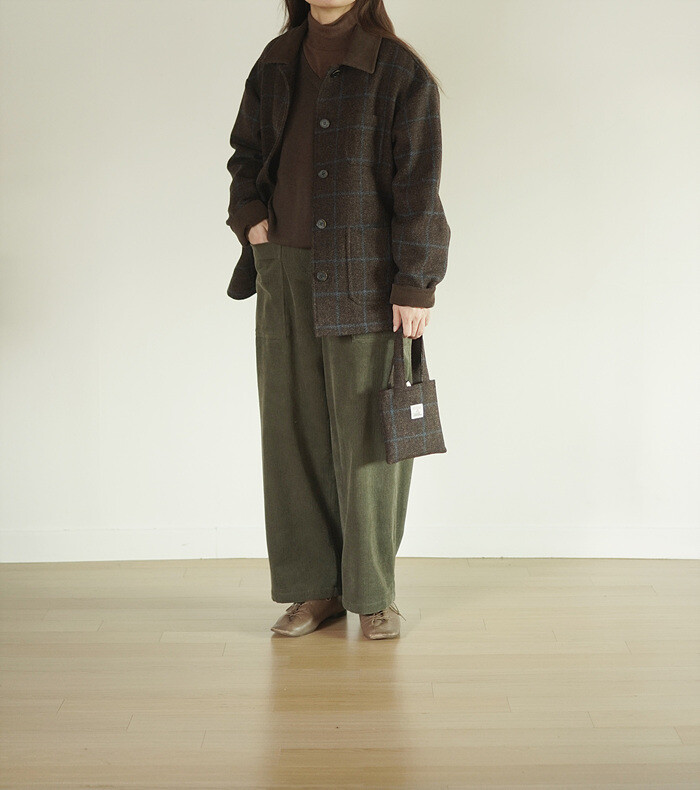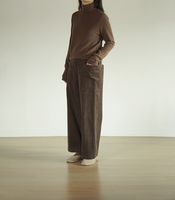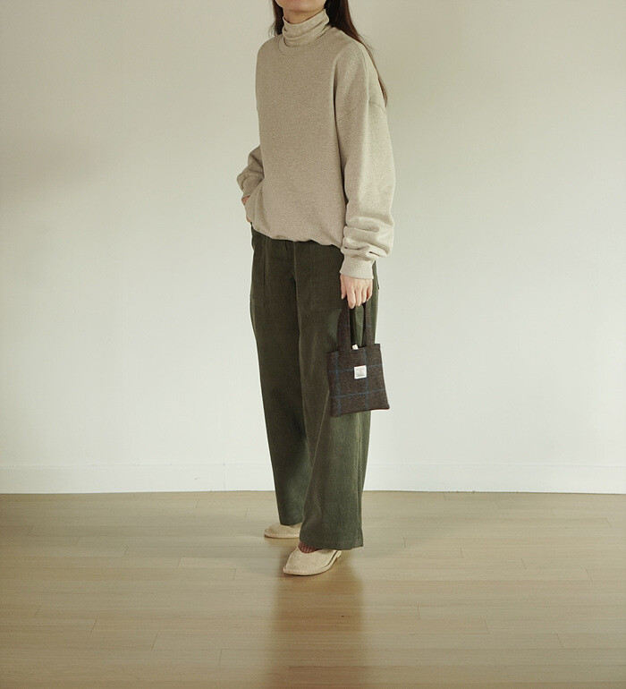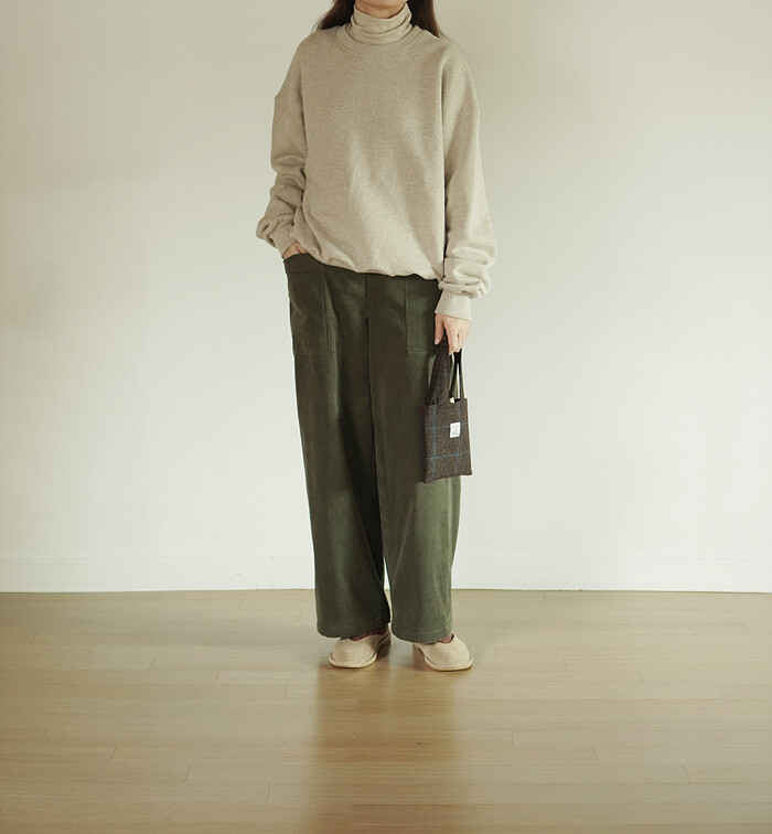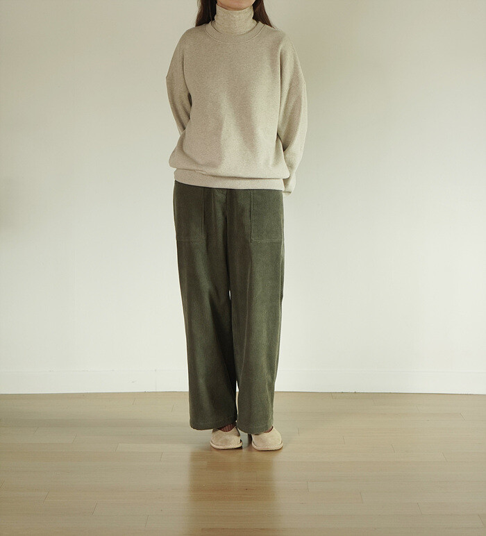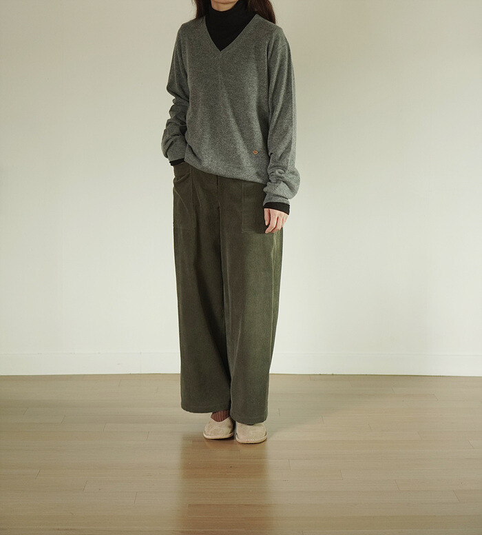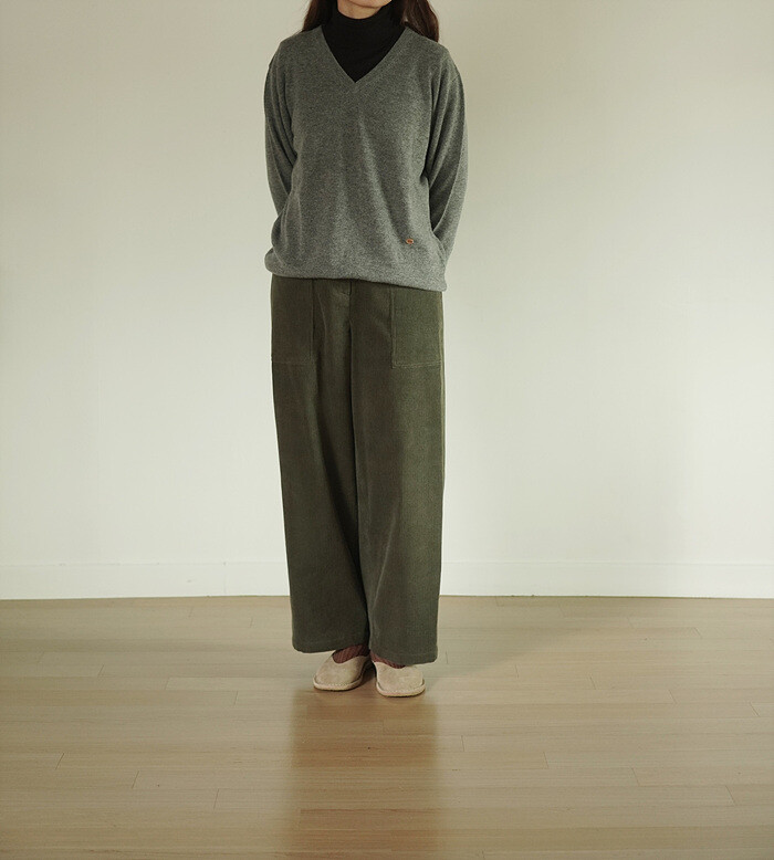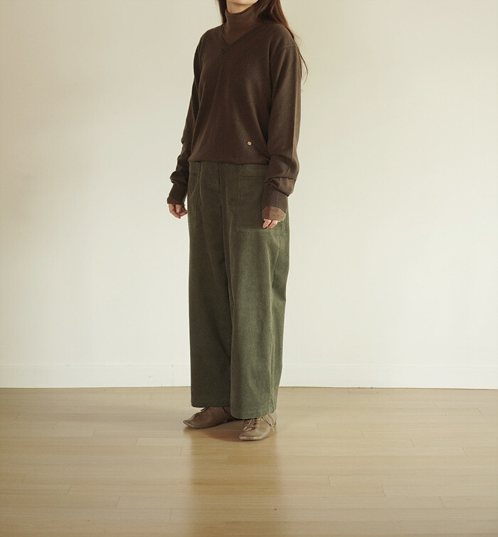 Deep olive 컬러의 포켓 코듀로이 팬츠와