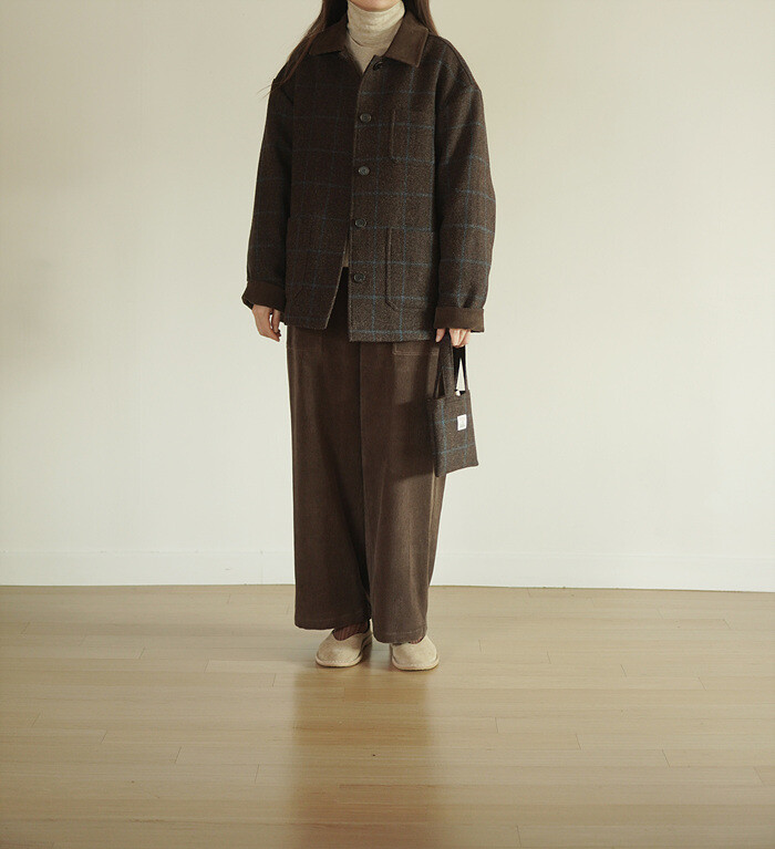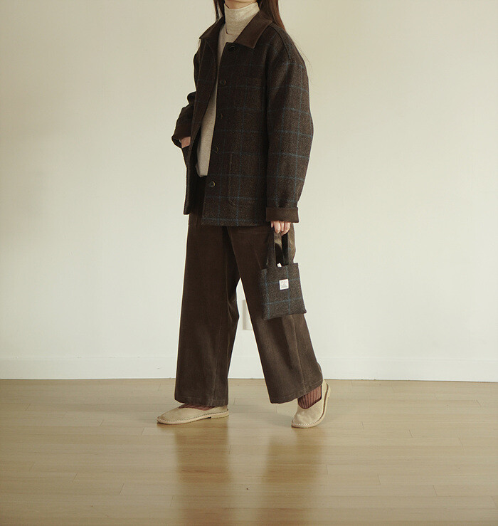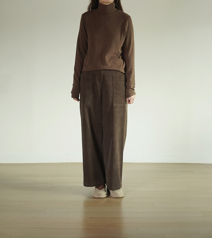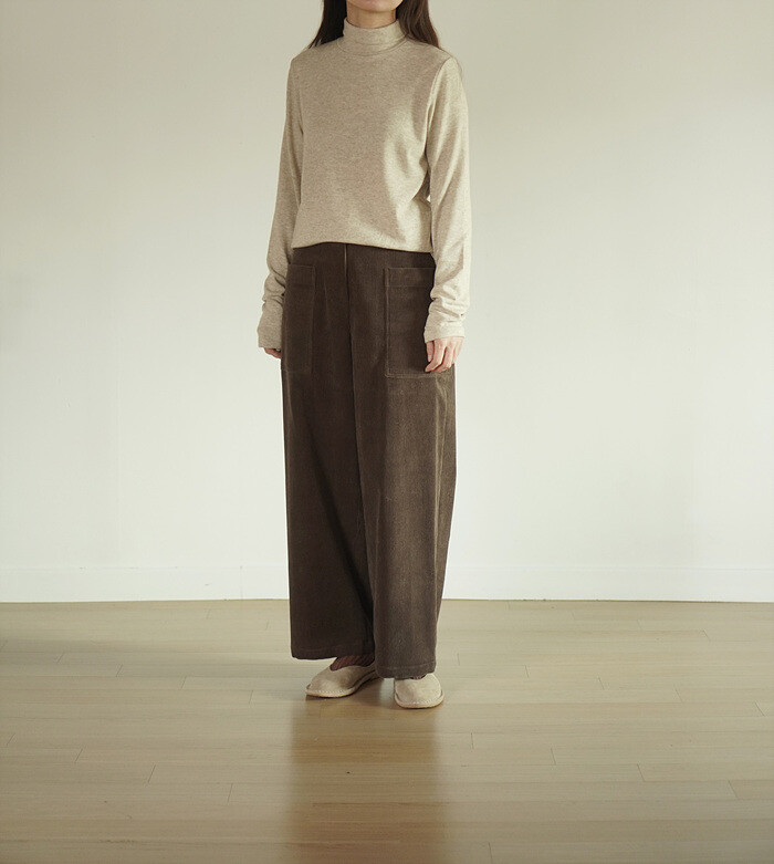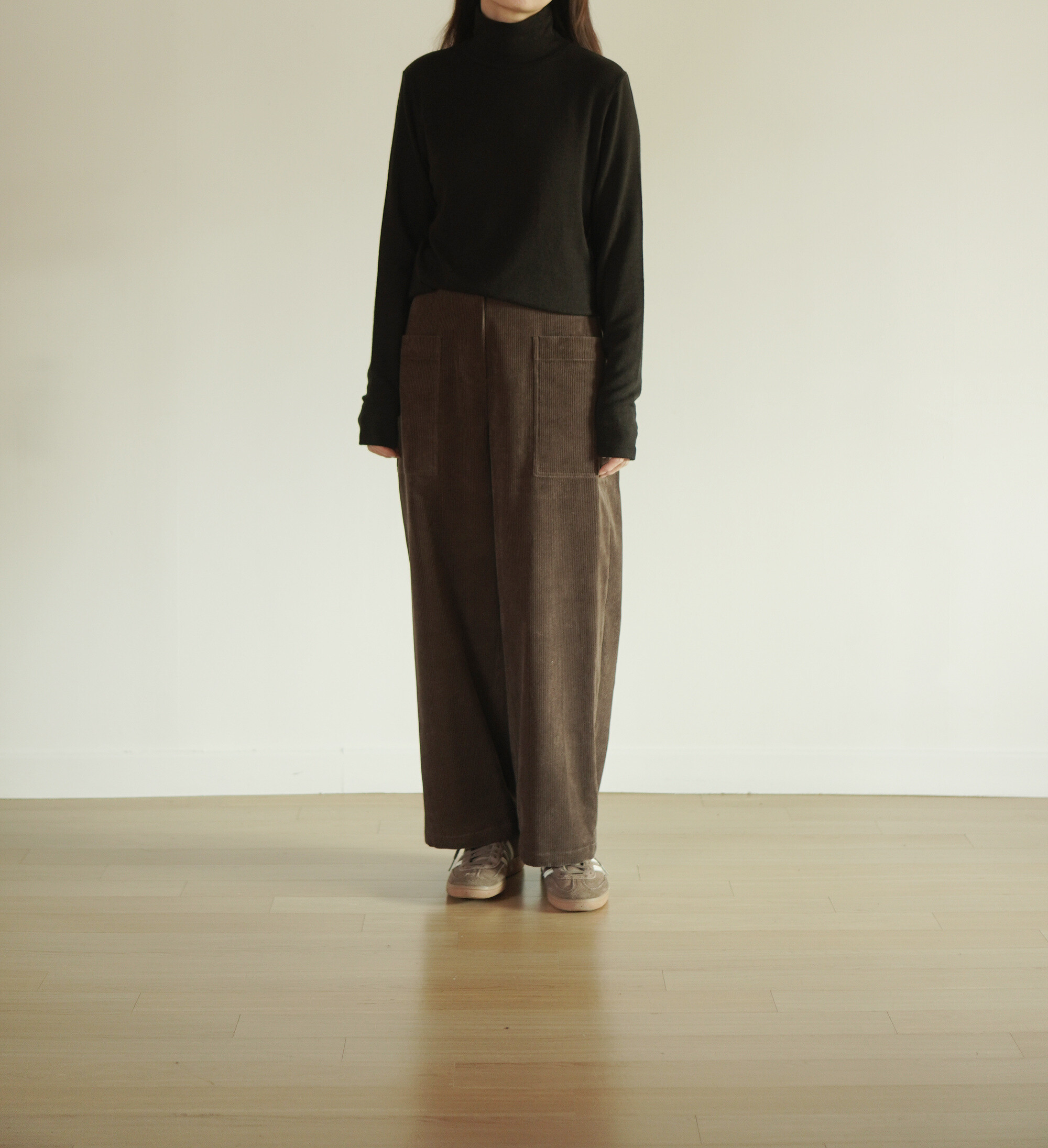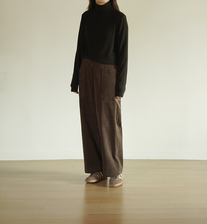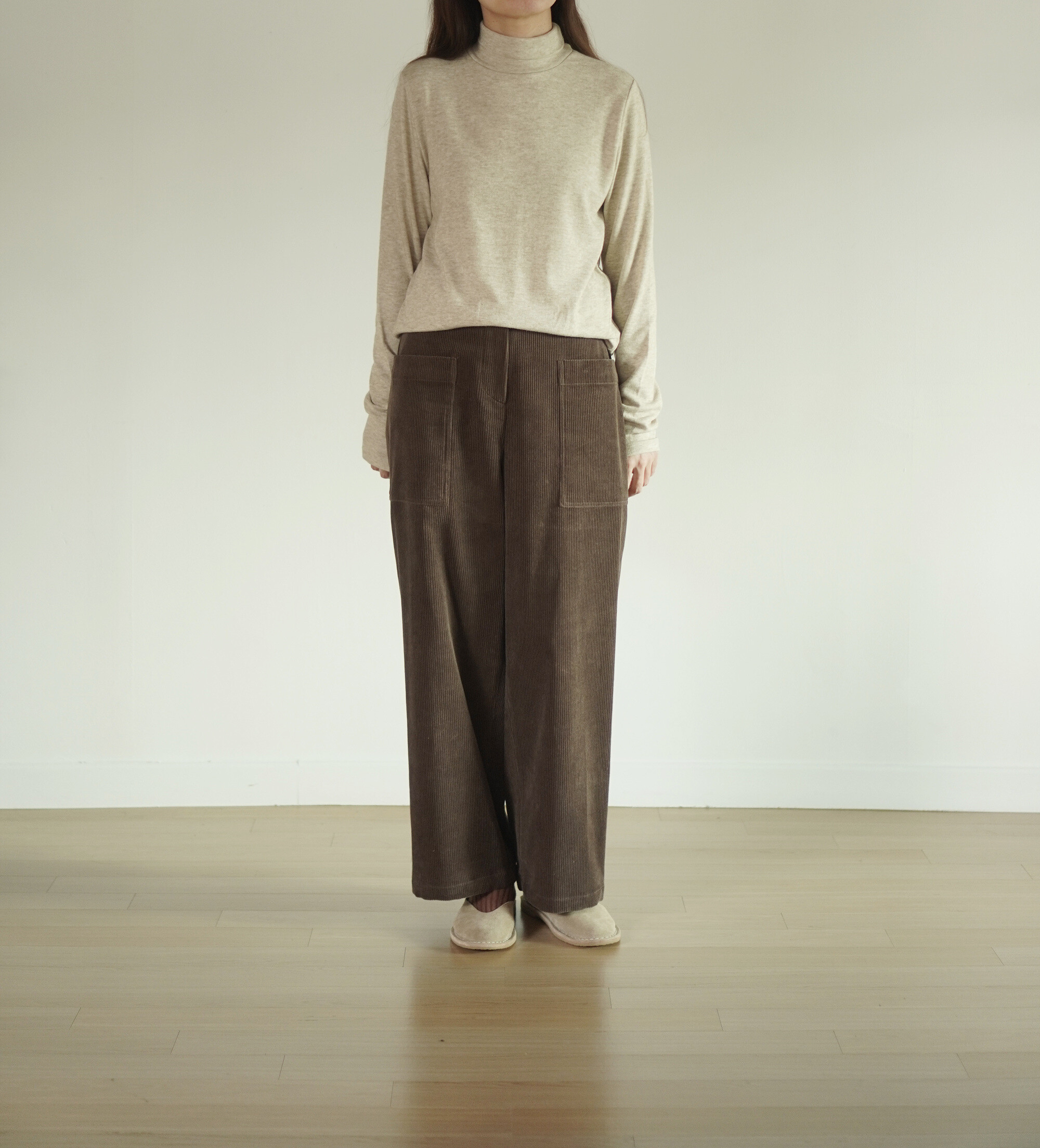 Deep olive 컬러의 포켓 코듀로이 팬츠와