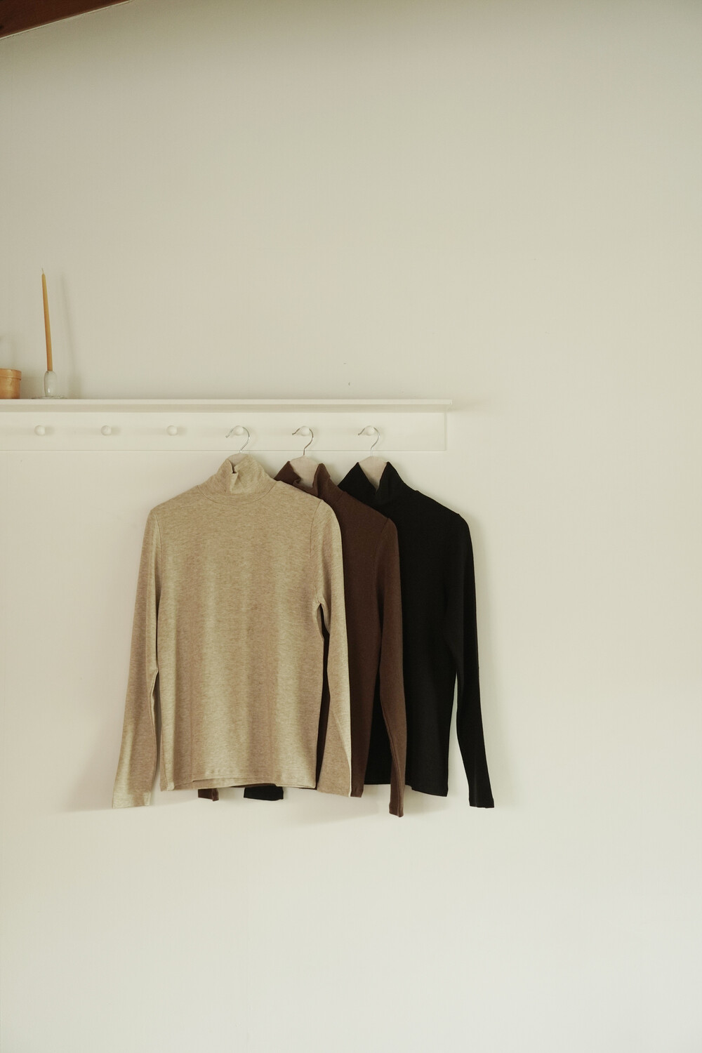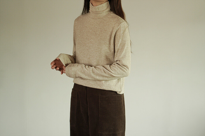 목이 답답한 경우, 반으로 접어 모크넥 mock neck 으로 연출이 가능합니다.