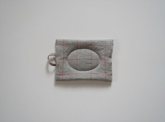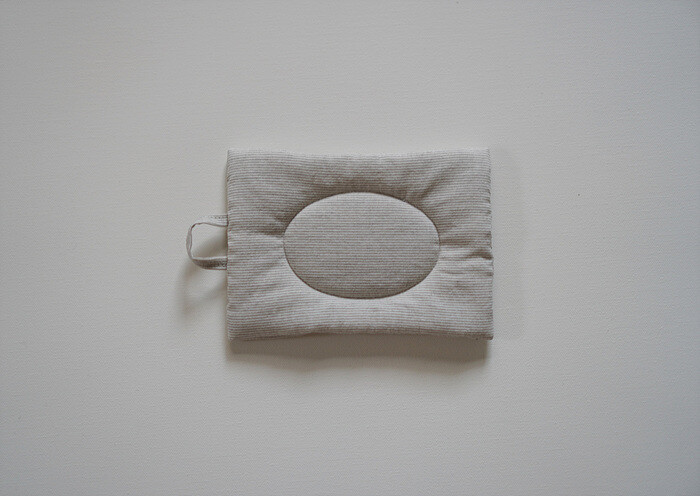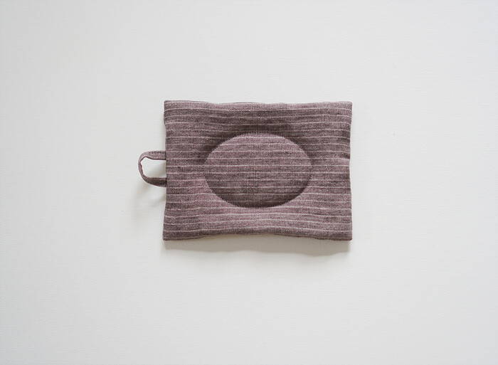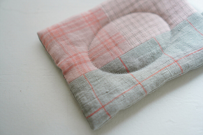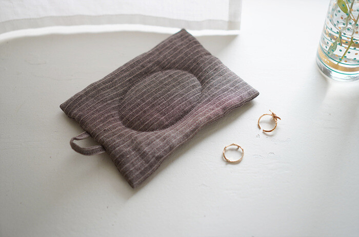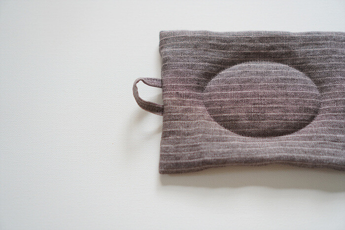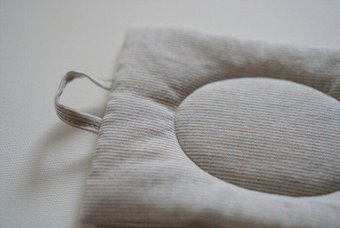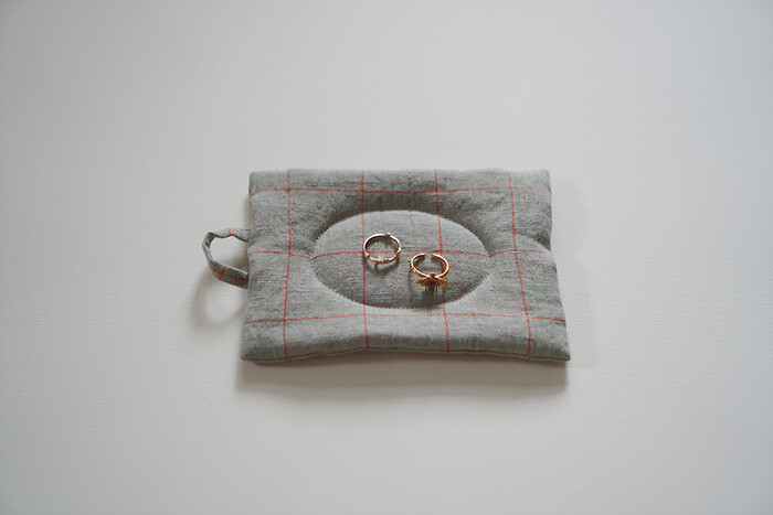 단정한 형태에 가운데 둥근 스티치가 포인트인,