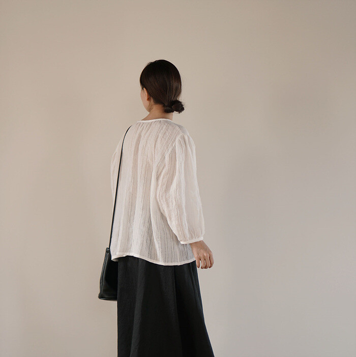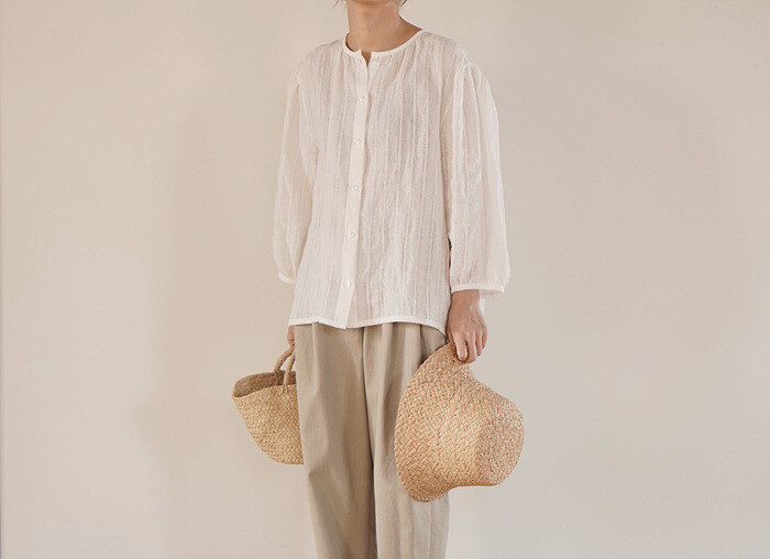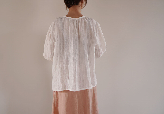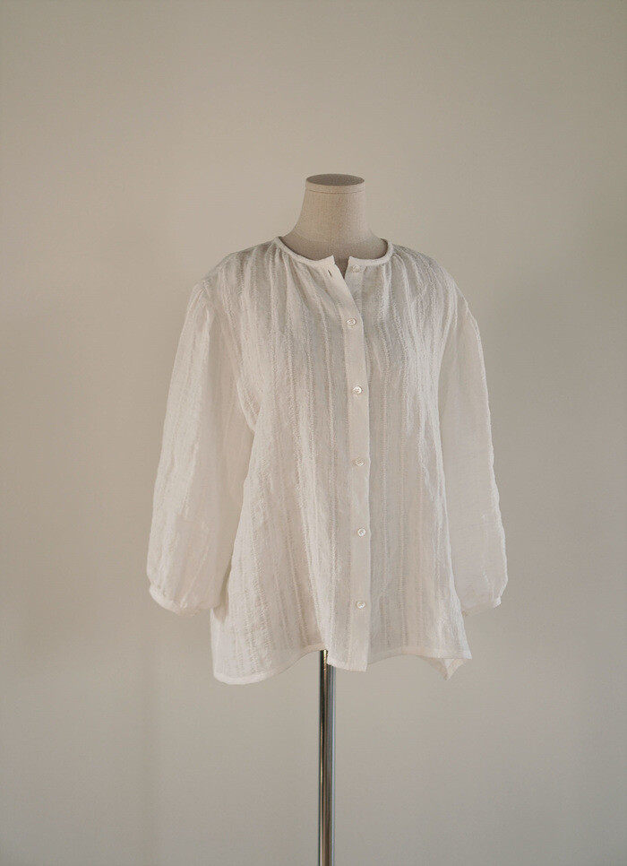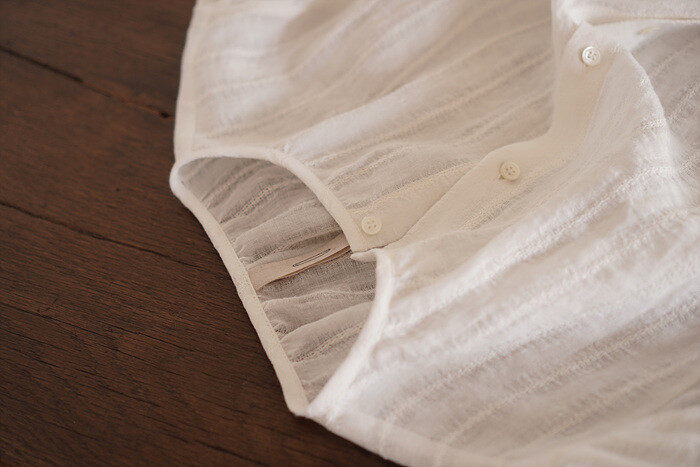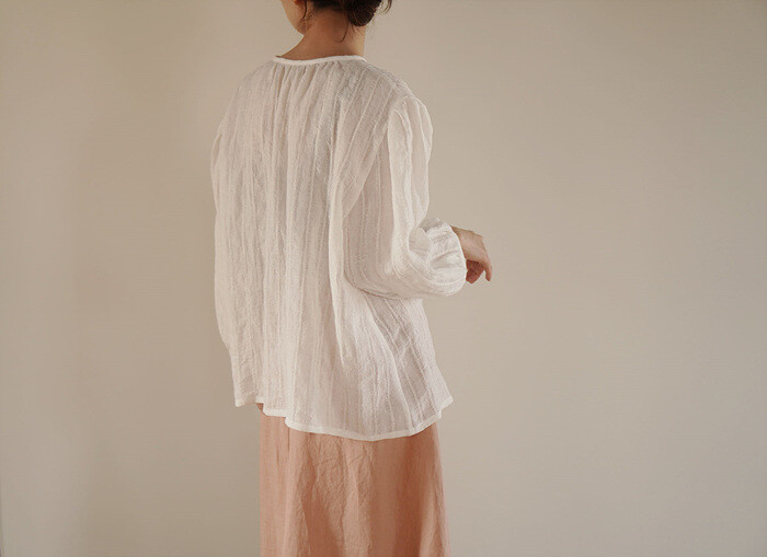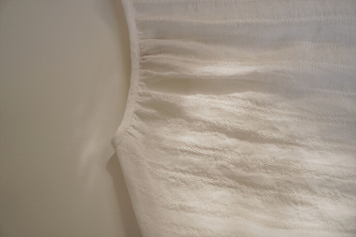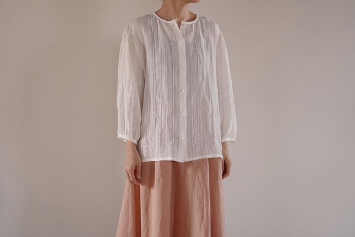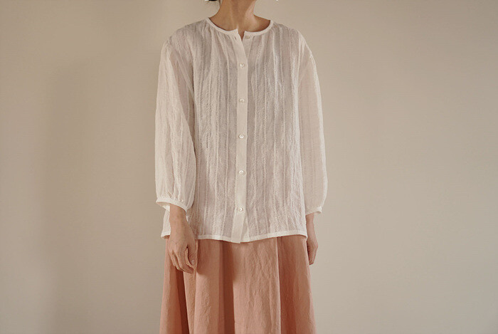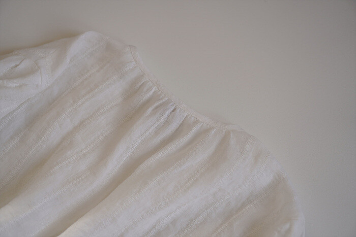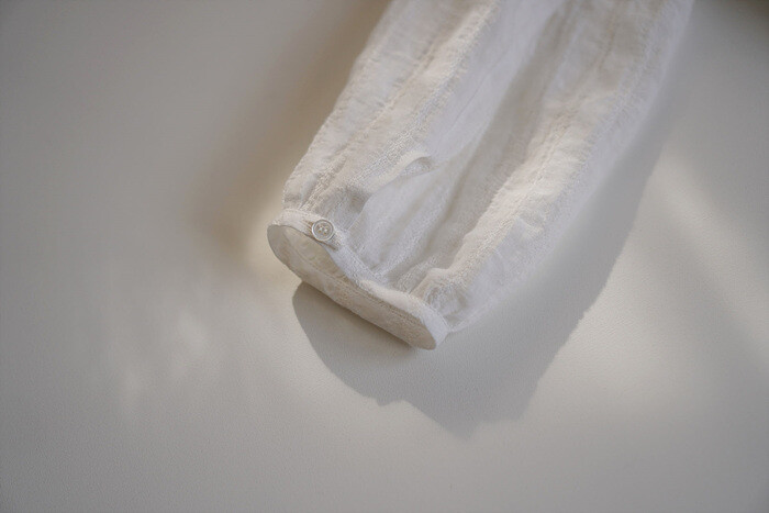 소맷단에 턱 디테일과 소매 입구의 셔링이