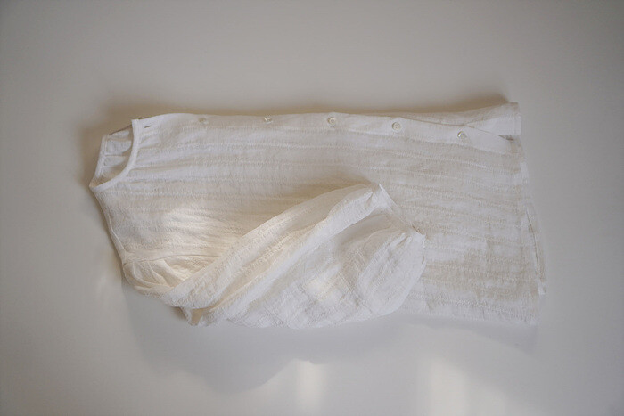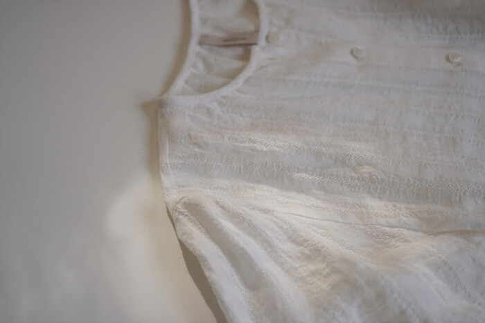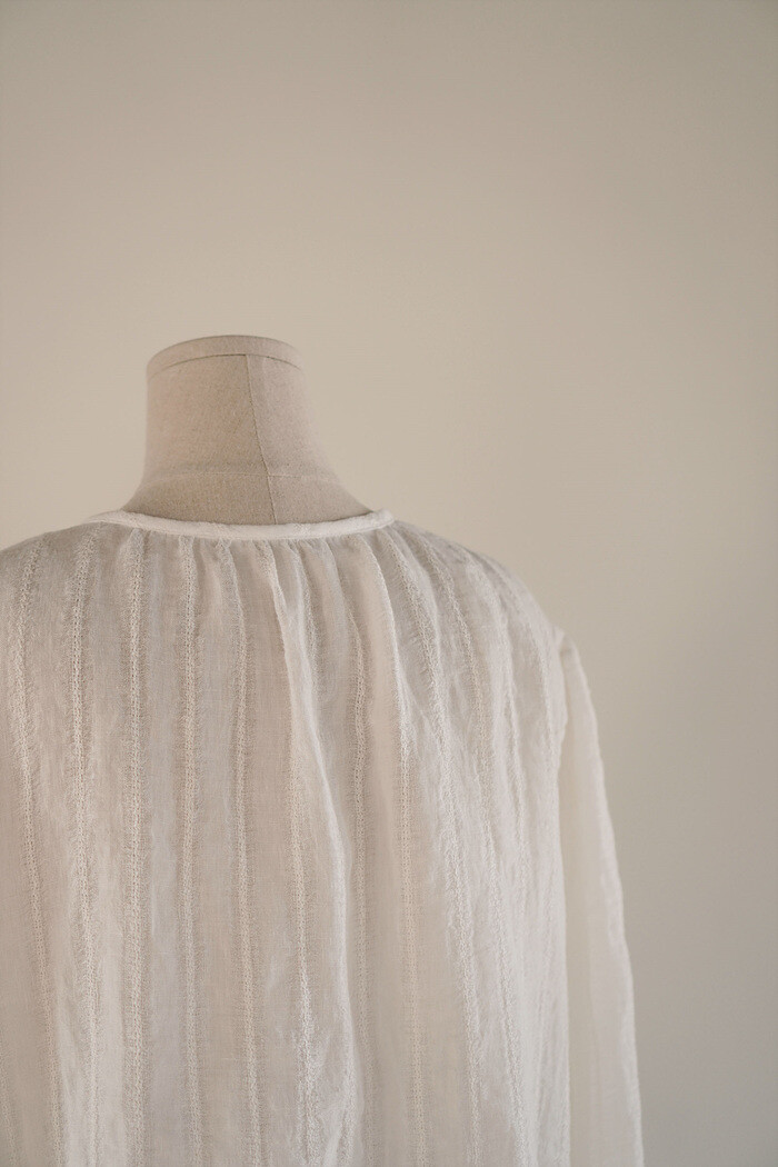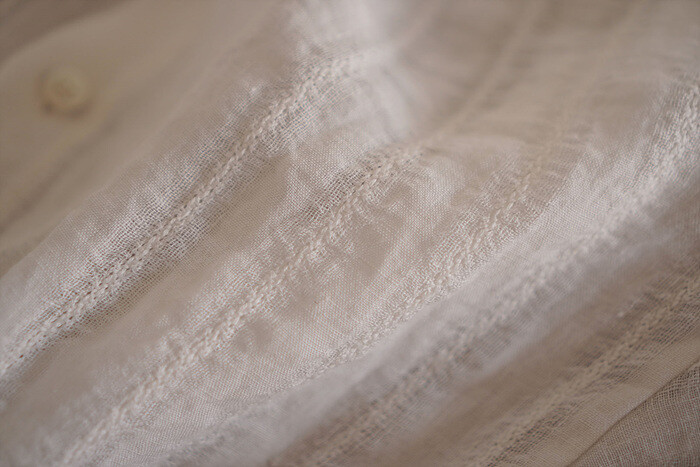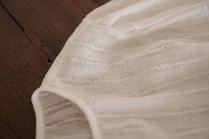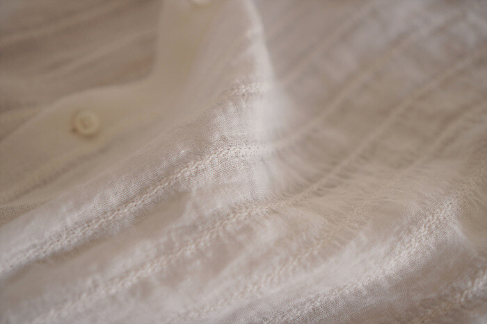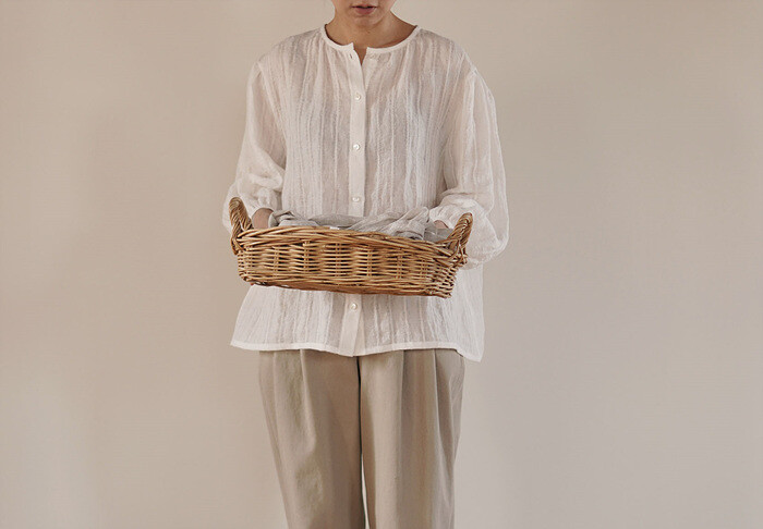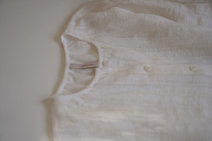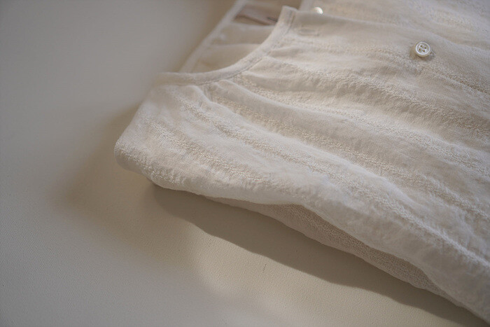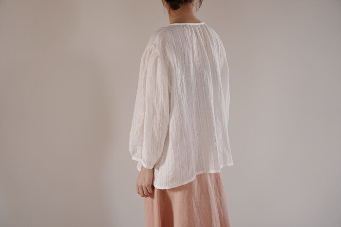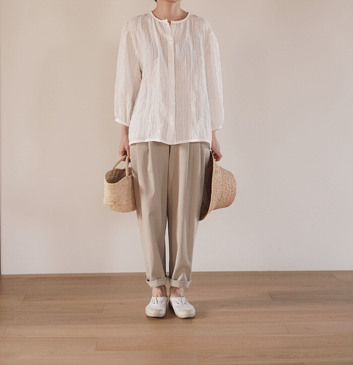 소맷단에 턱 디테일과 소매 입구의 셔링이