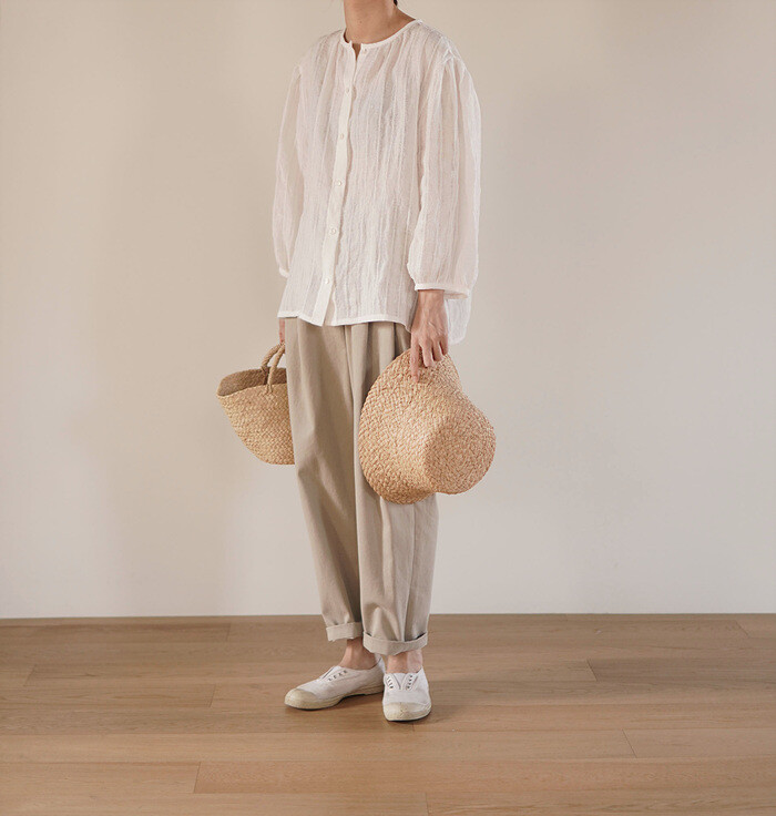 여유있는 실루엣이 리듬감있는 밑단을 만들어 주며,