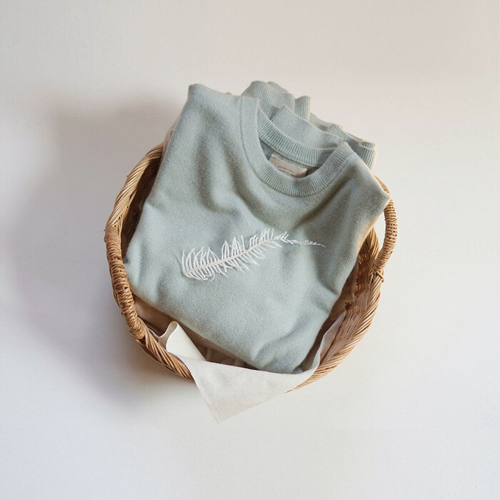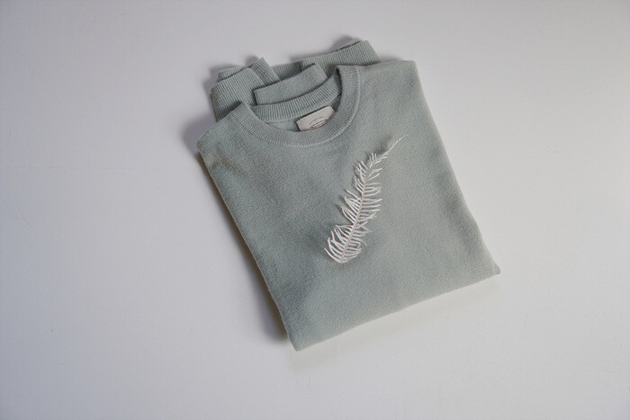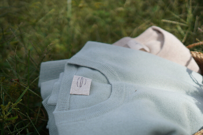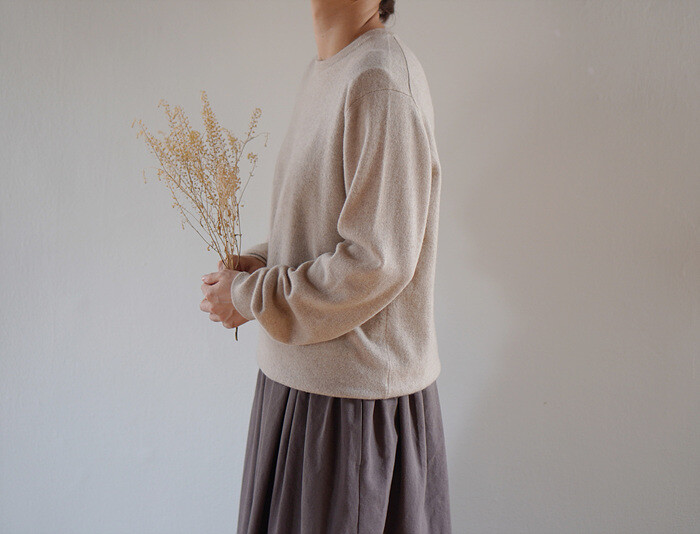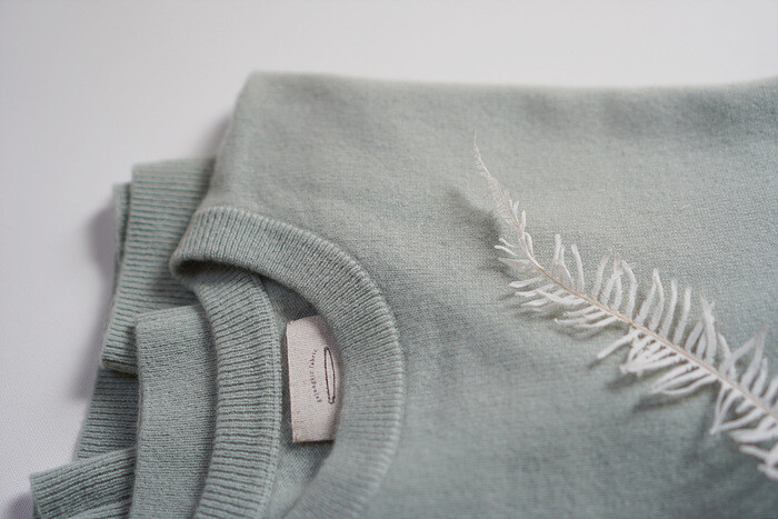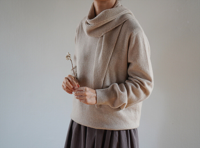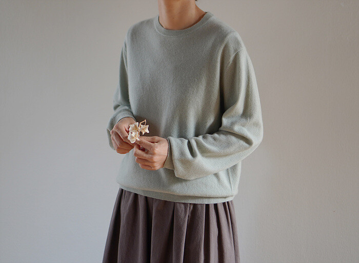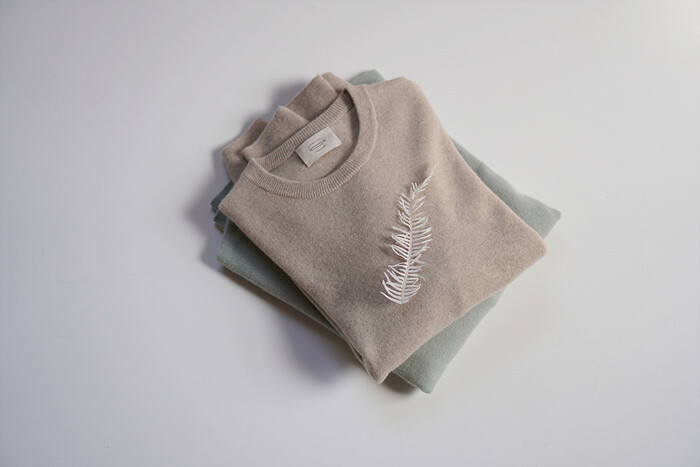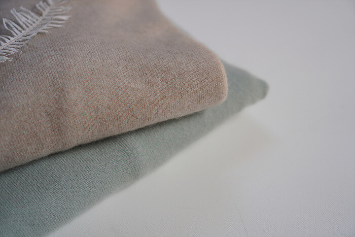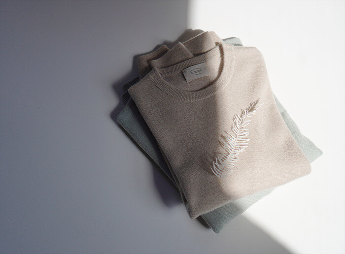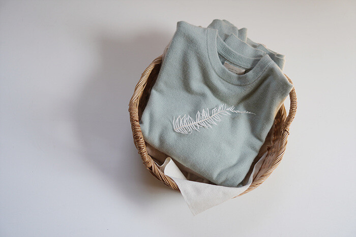 넥, 소매, 밑단 부분은 립 조직으로 짜여졌습니다.