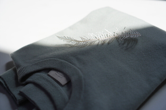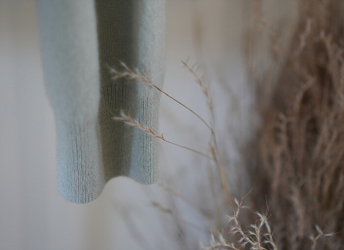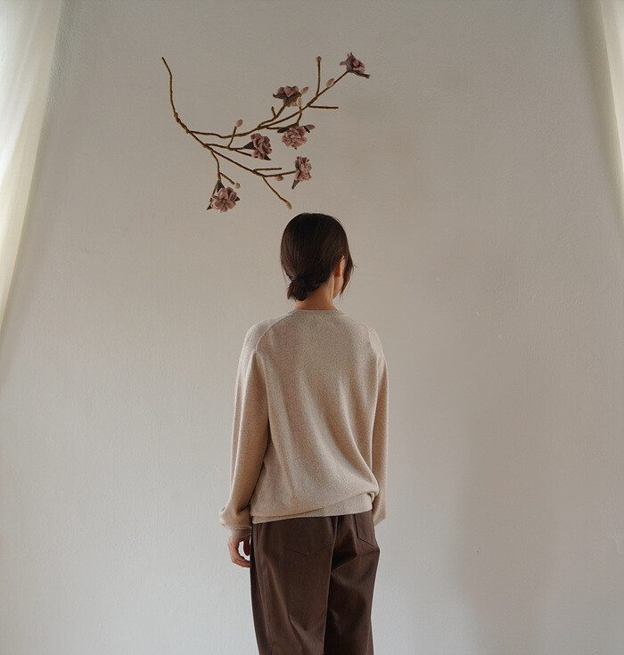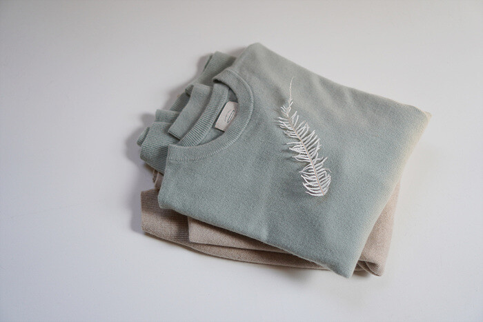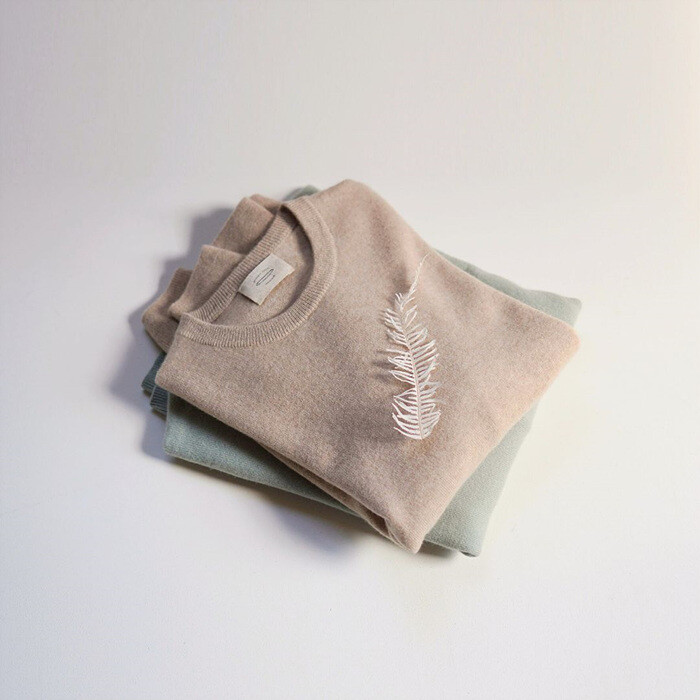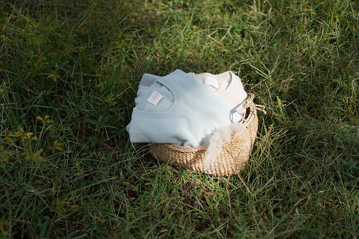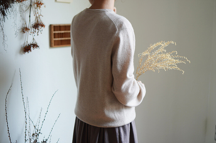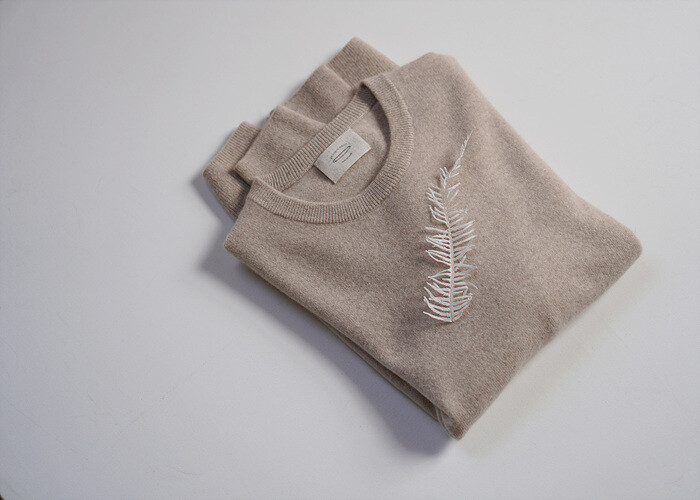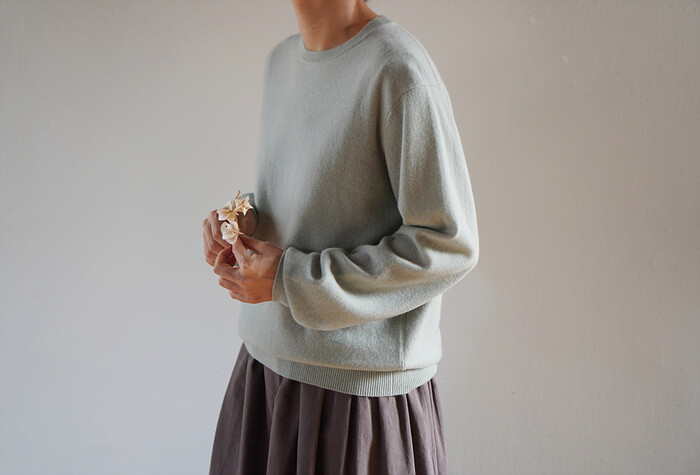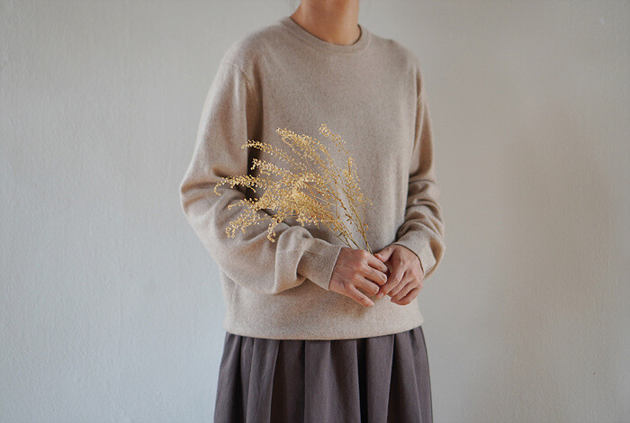 넥, 소매, 밑단 부분은 립 조직으로 짜여졌습니다.