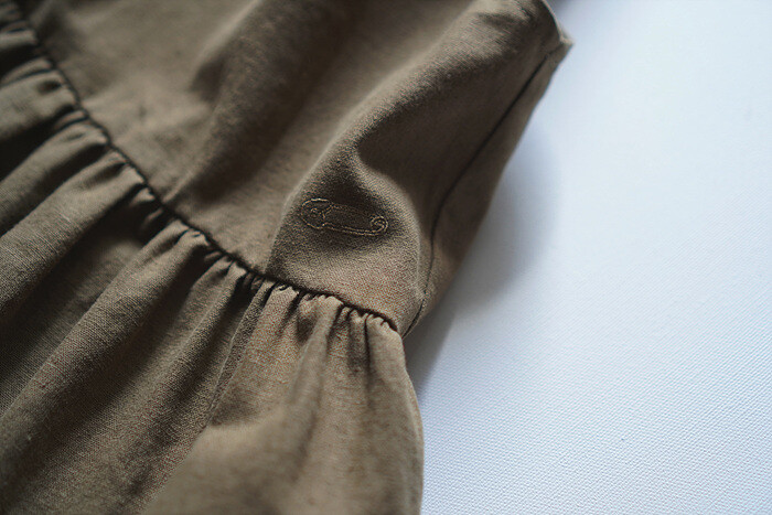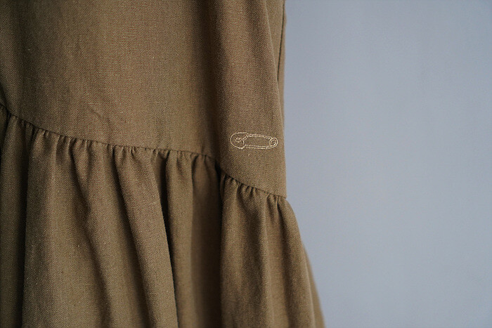 한켠에 같은 컬러로 은은하게 옷핀 자수를 놓아,