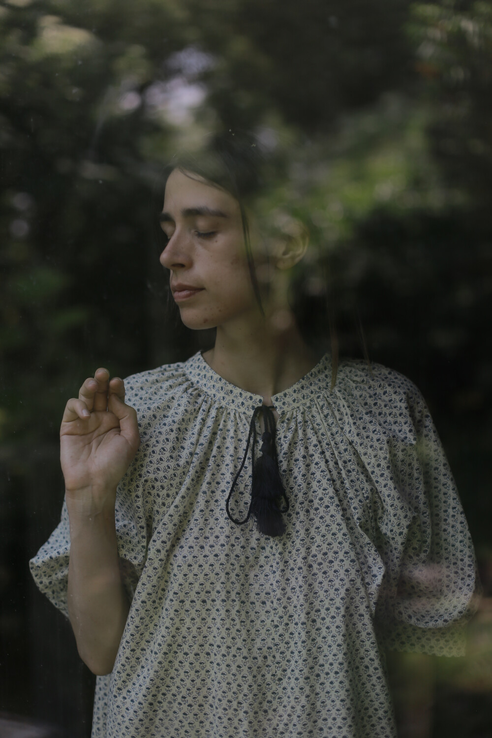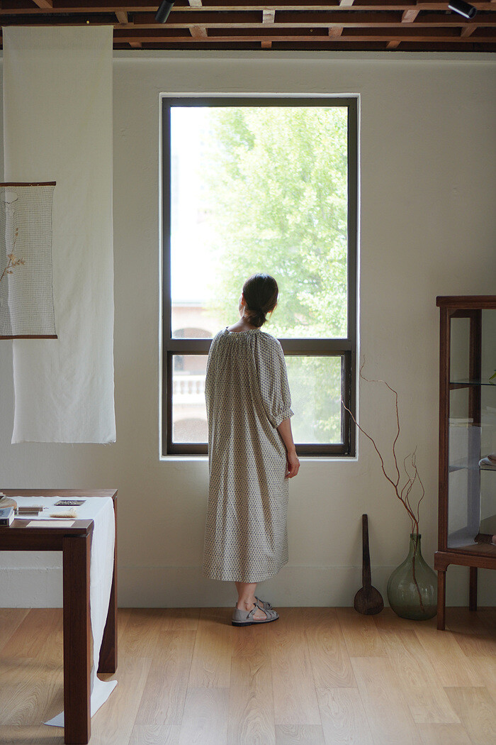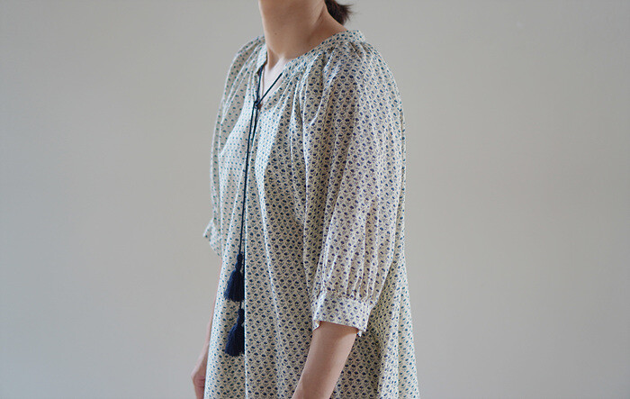 셔링이 전체적으로 편안하고 풍성한 실루엣을 만들어 줍니다