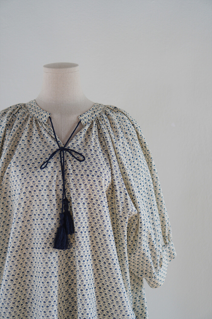 블루빛 작은 꽃들이 어우러진 패턴과 색입니다.