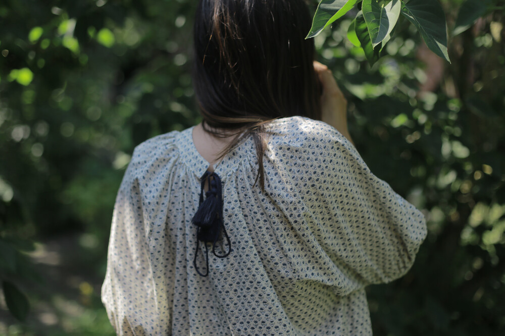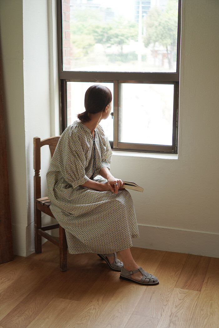 소매 입구 역시 잔잔한 셔링과 밴드로