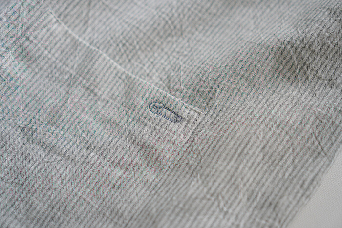 주머니 한쪽에 자수로 살짝 자리 잡고 있습니다.