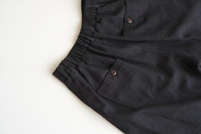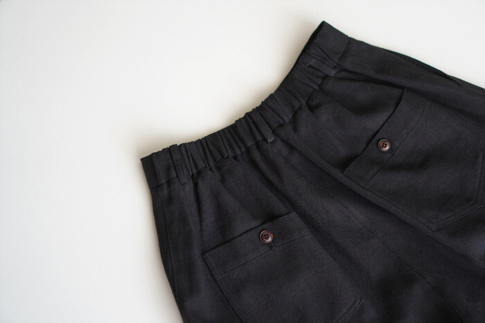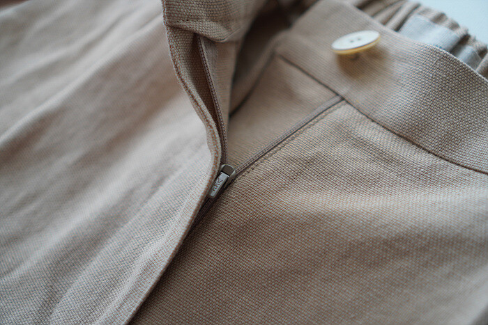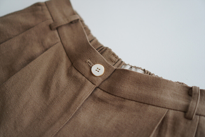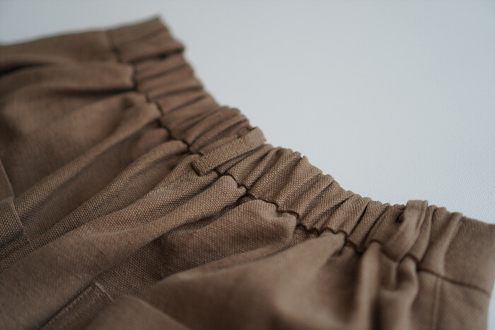허리의 시접은 비슷한 색상의 코튼 소재로 감싸