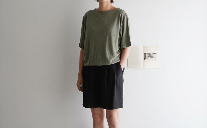 카키색 린넨티와 함께.