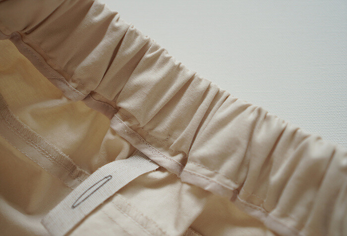 허리전체 시접은 코튼 소재로 바이어스 마감되어 있으며,