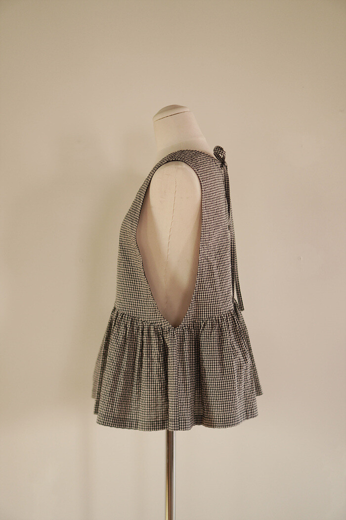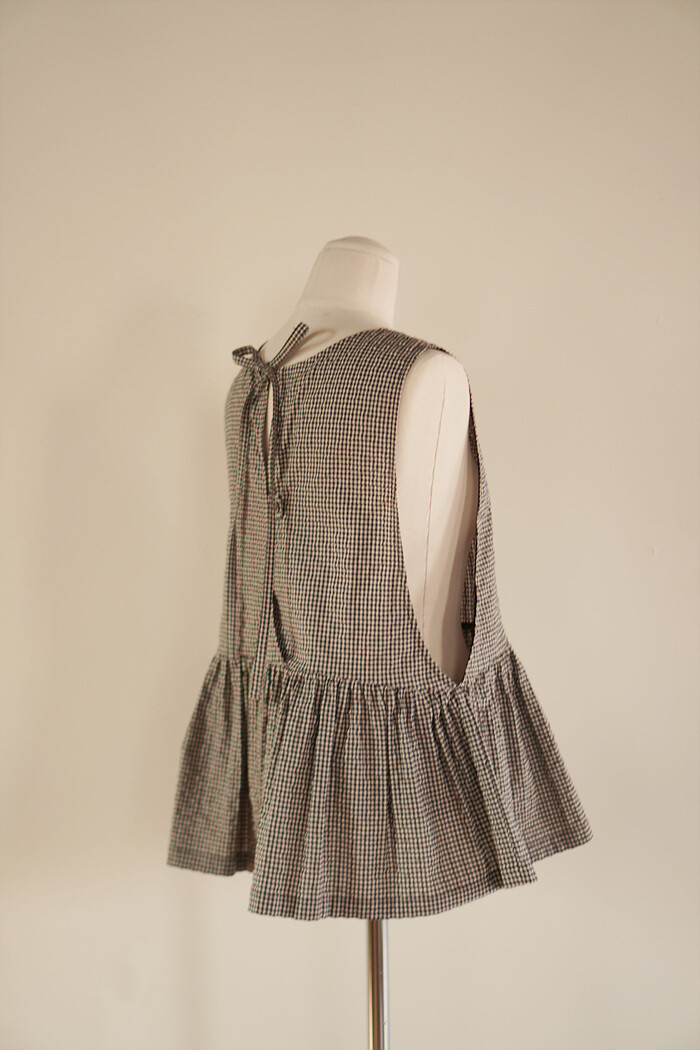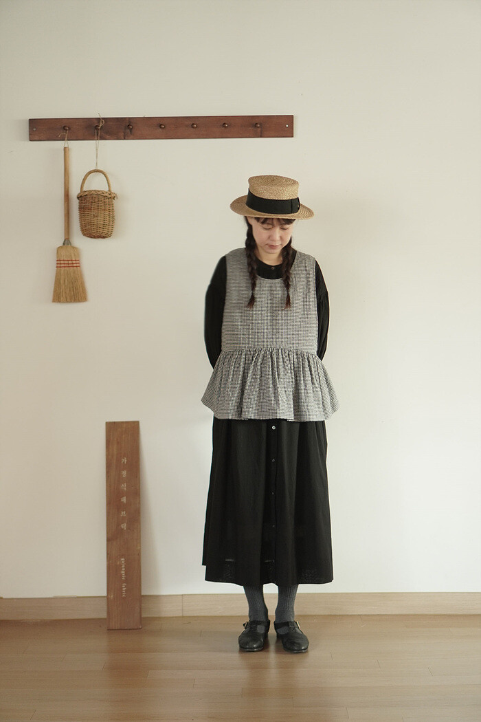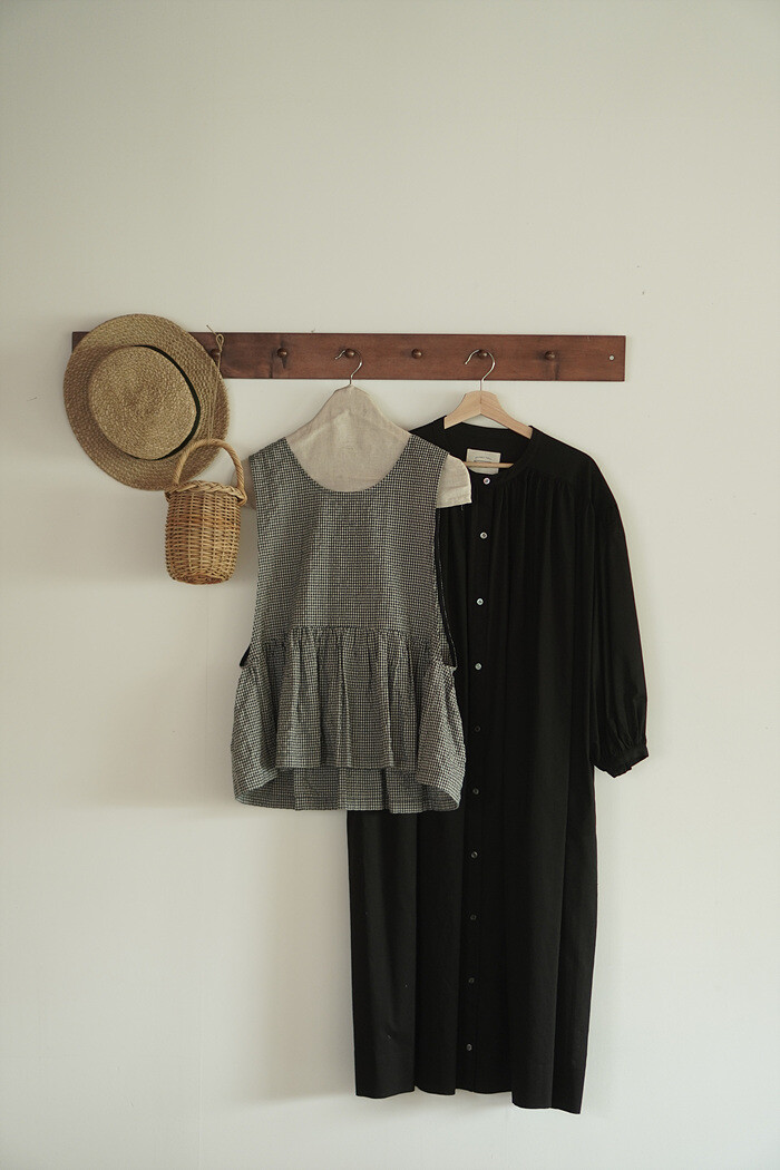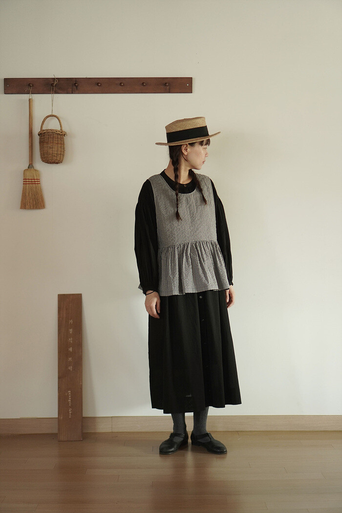 넥라인 , 암홀은 블랙 컬러로 인사이드 바이어스 처리 되었습니다