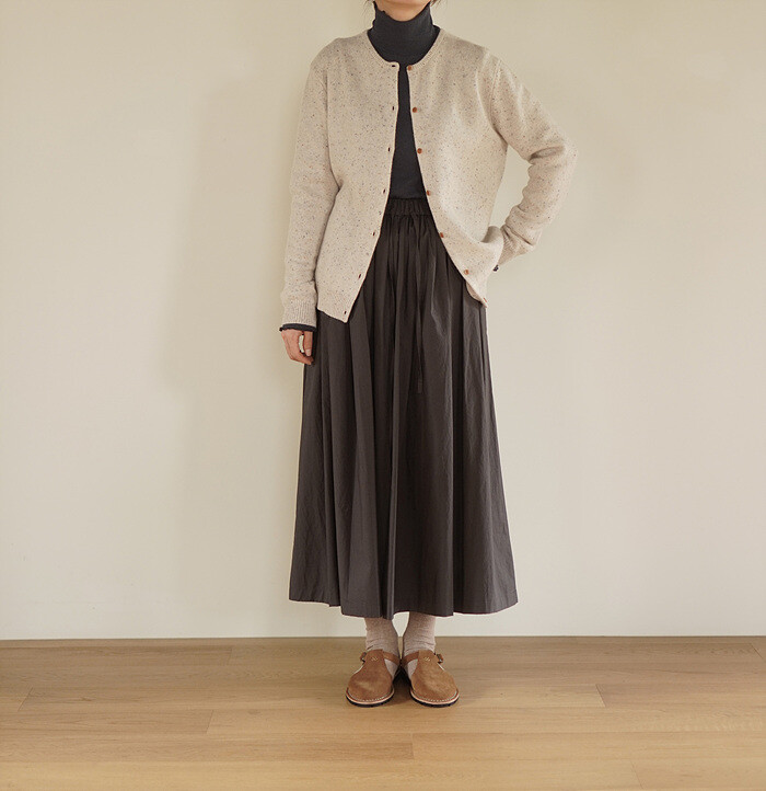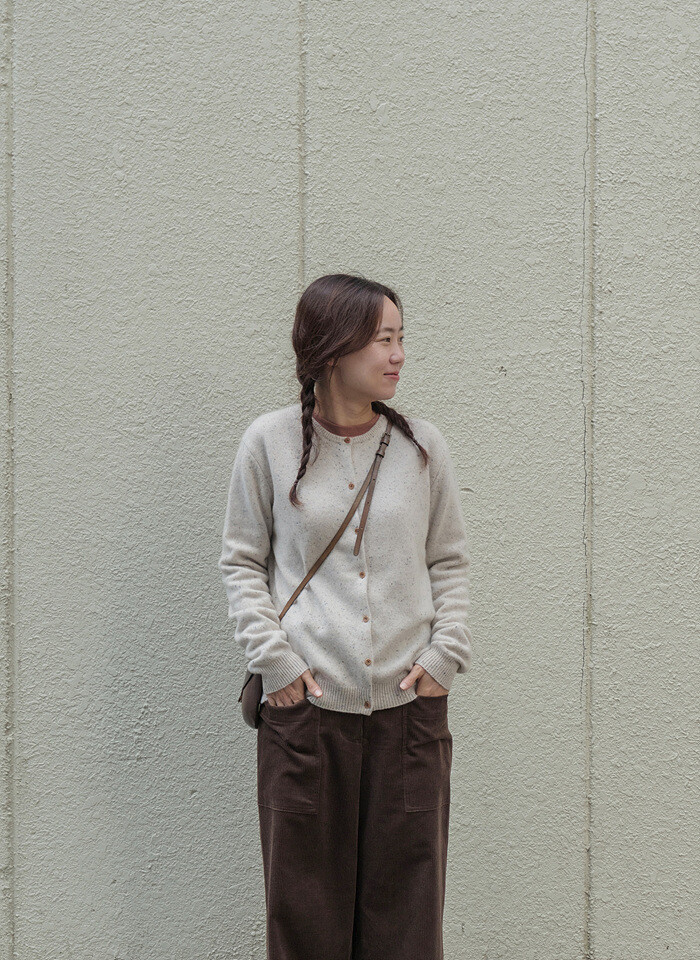 단추는 따뜻한 피넛컬러의 너트 단추를 매칭했습니다