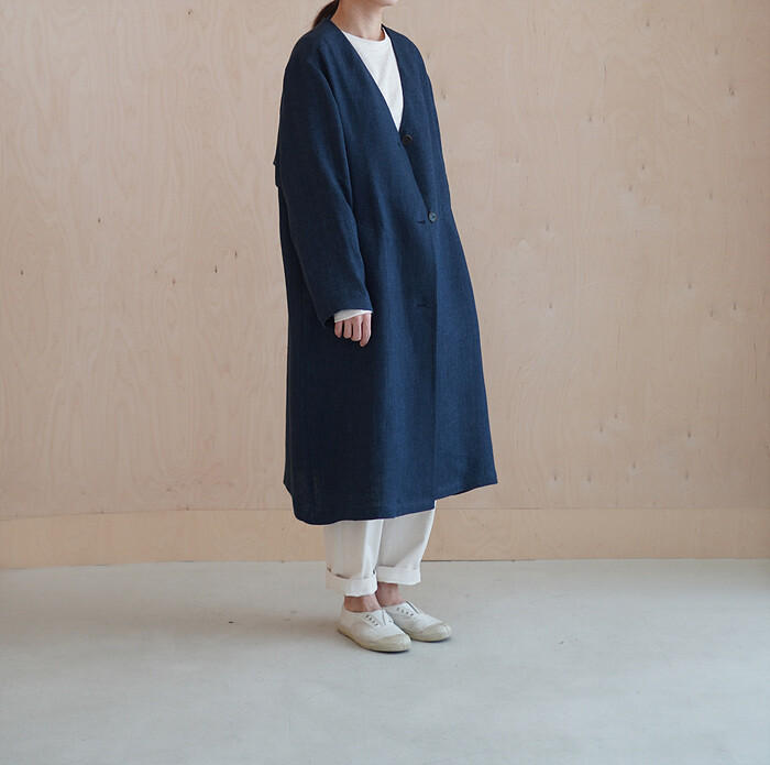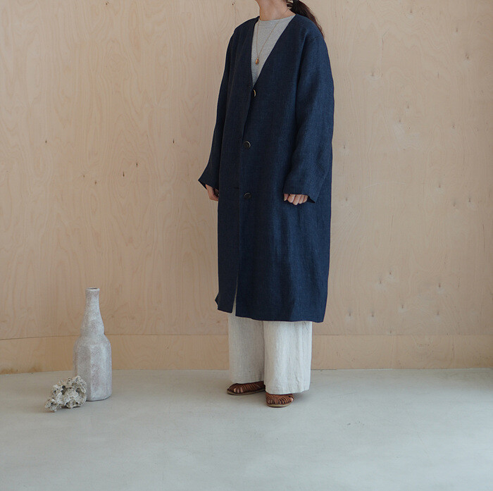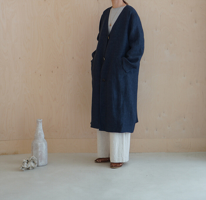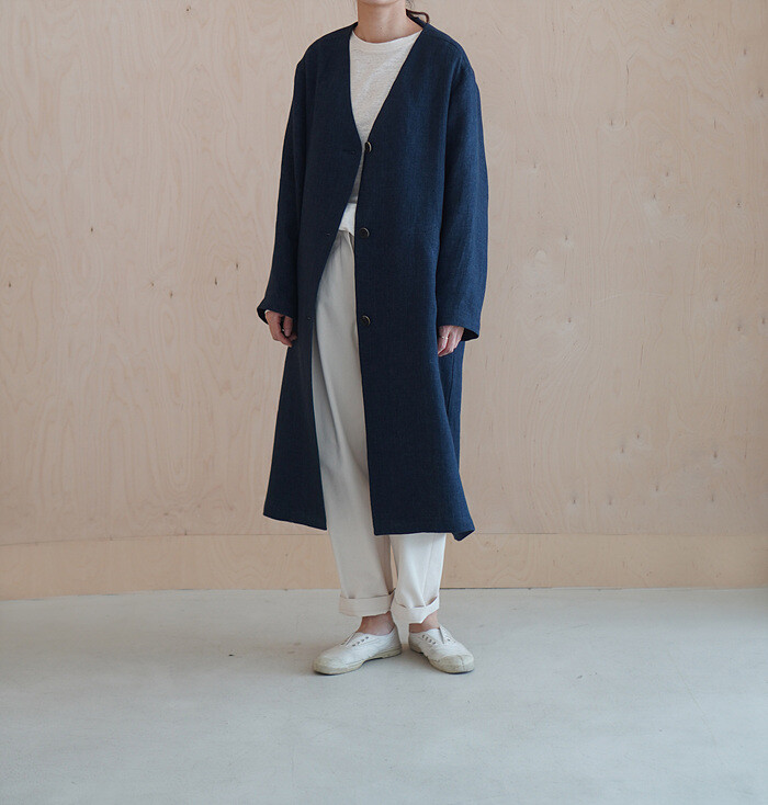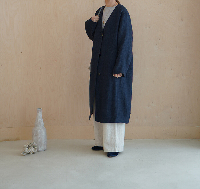 롱 보리 자켓은 카라 없이 편안하게 흐르는