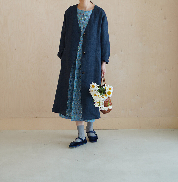 가운데에 작은 탭 장식에 단추여밈을 더했습니다.