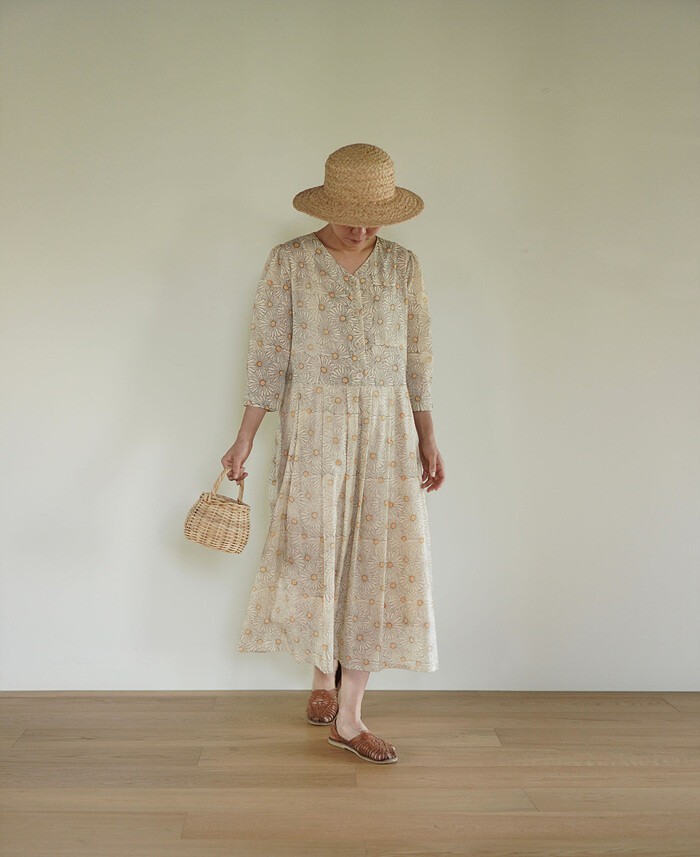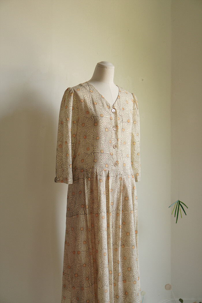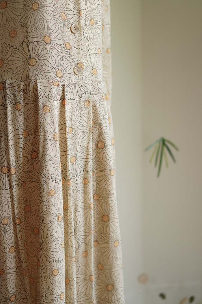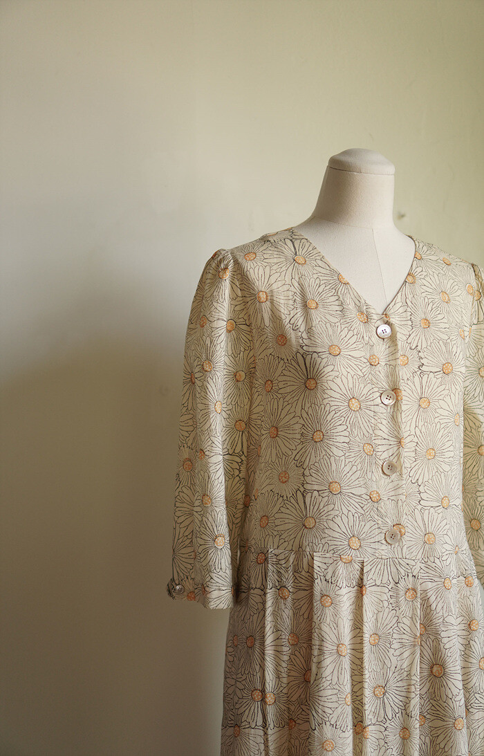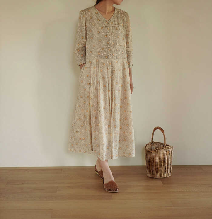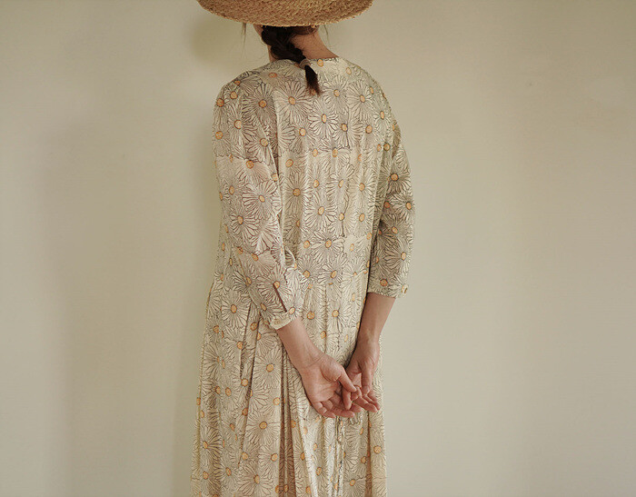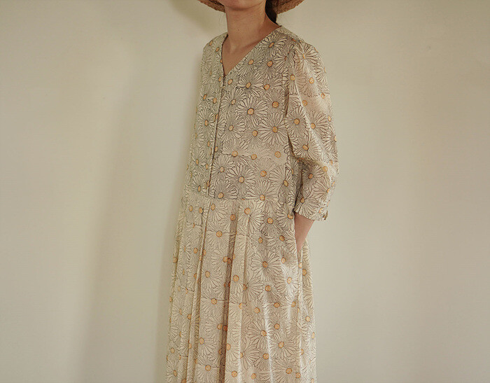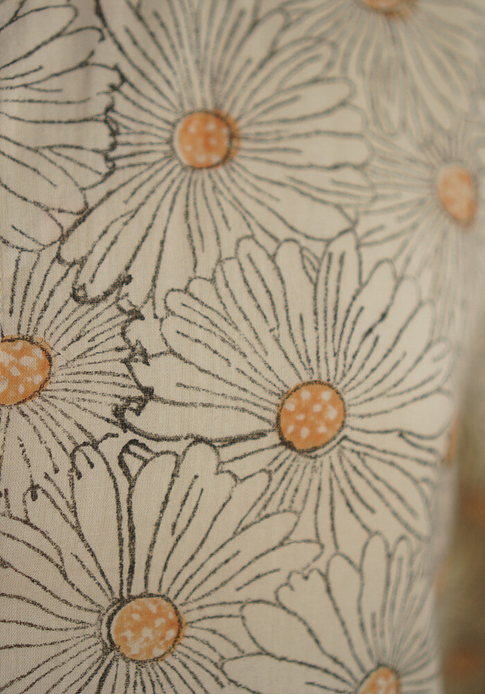 옅은 노란색 바탕에 데이지꽃 패턴이