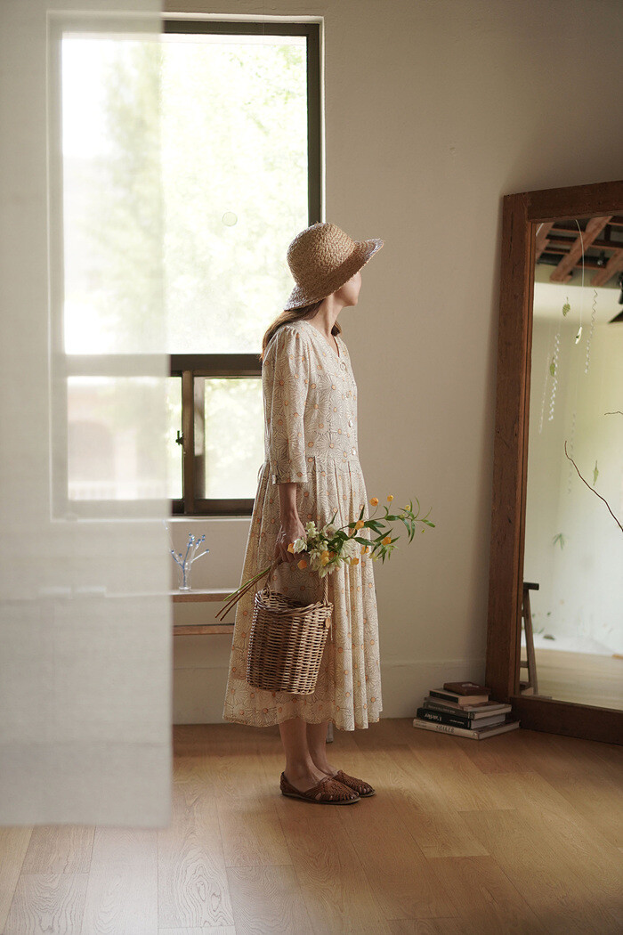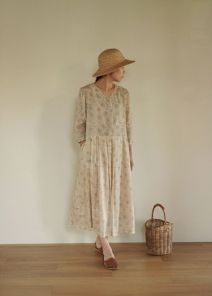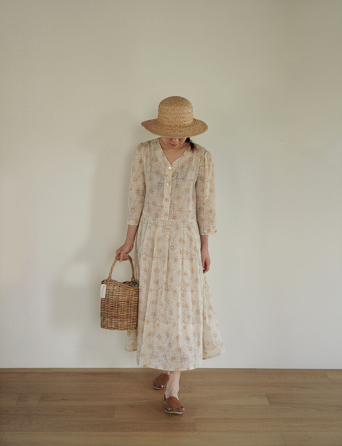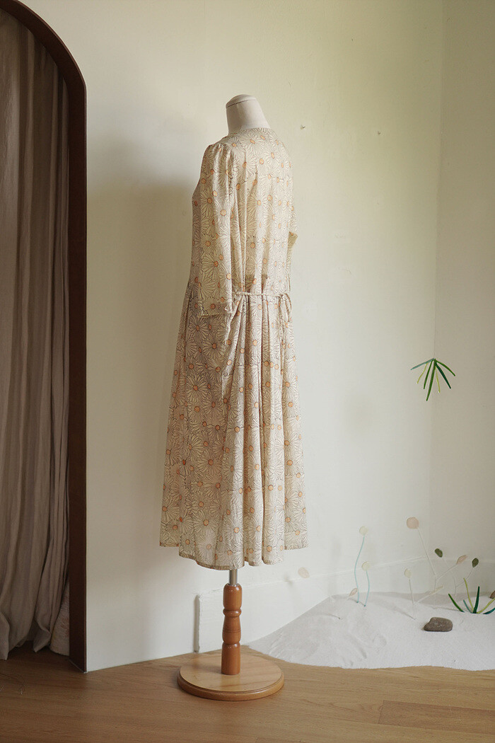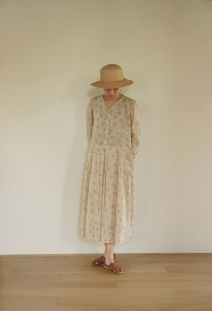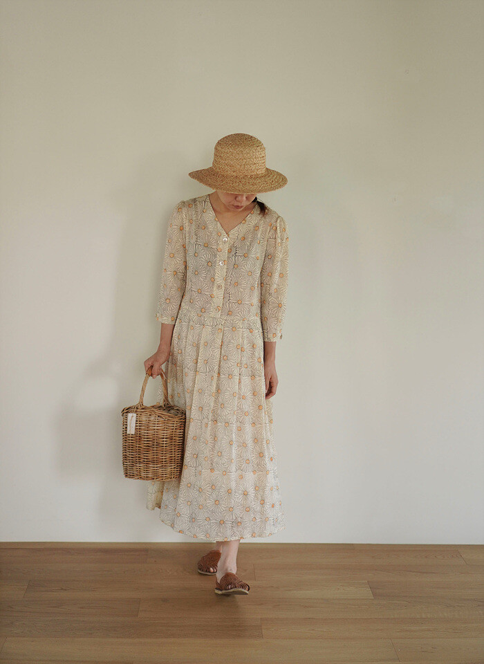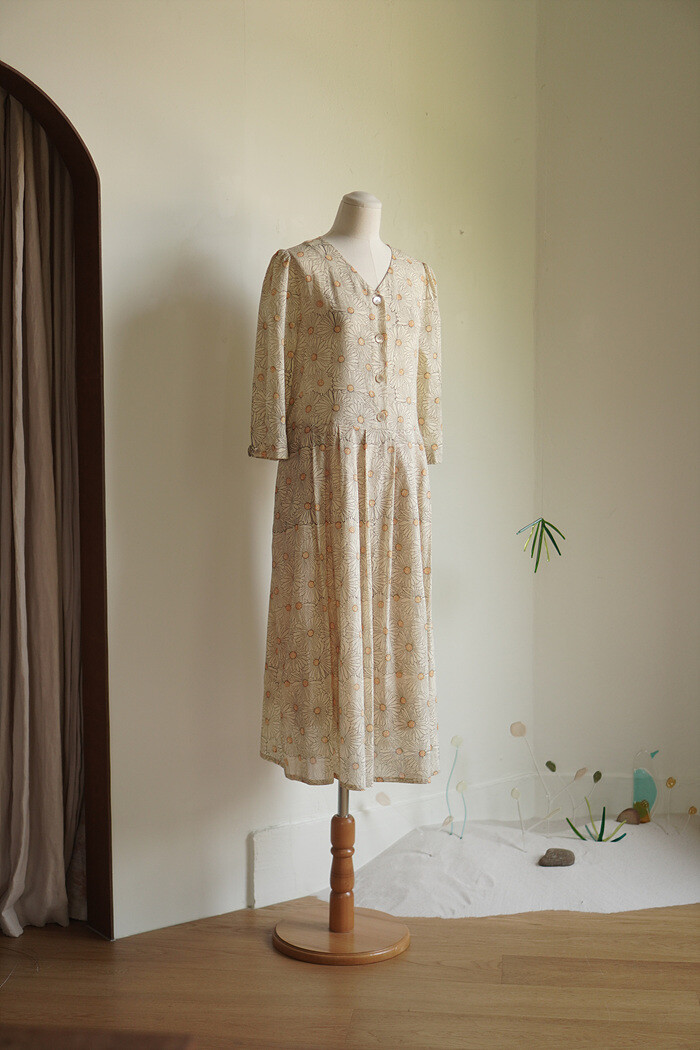 옅은 노란색 바탕에 데이지꽃 패턴이