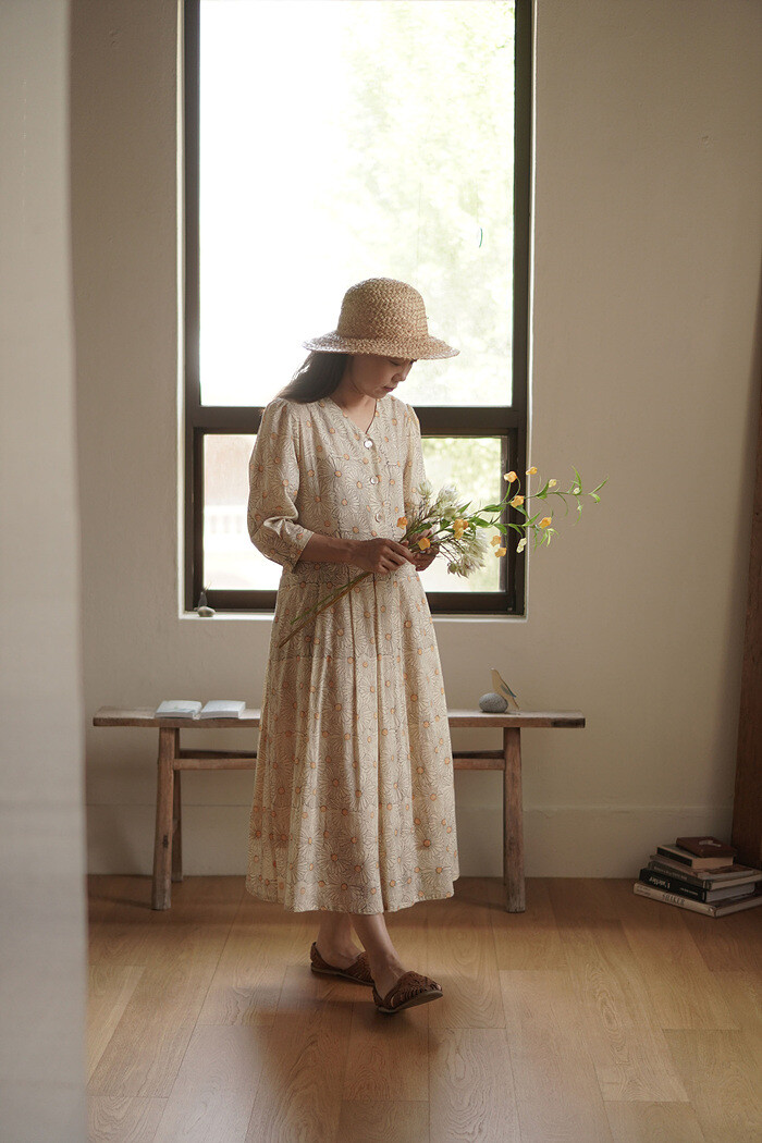인도의 핸드 블럭 프린트 기법으로 프린트된
