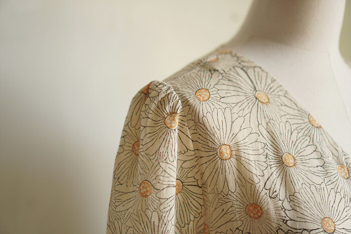 소재가 얇아 실루엣이 부하기 보다 부드럽게 흐르는 퍼프소매입니다.