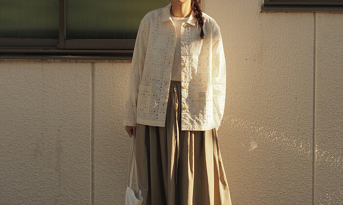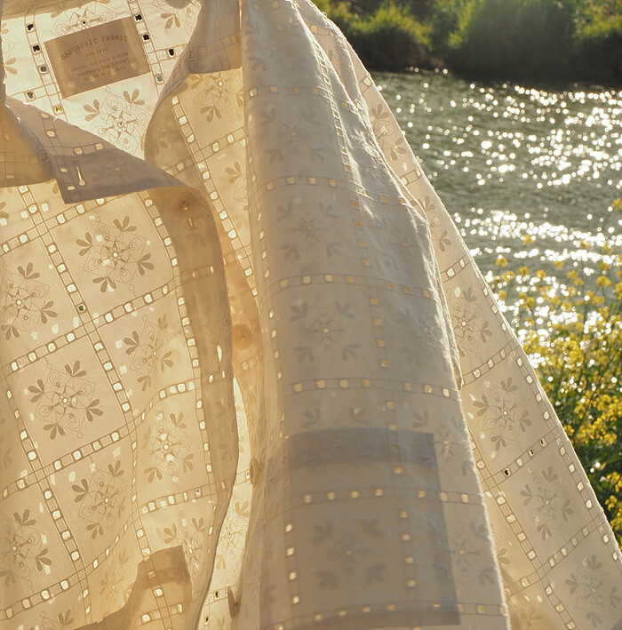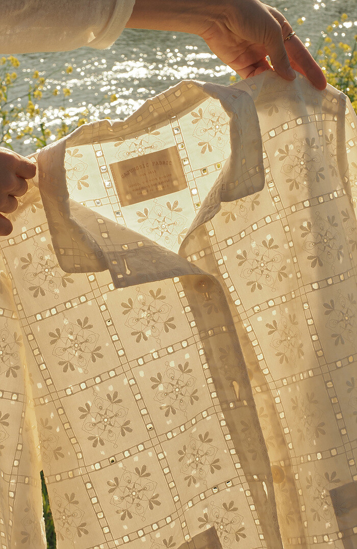 섬세한 무늬와 더불어 통기성이 좋은 아일렛 소재는