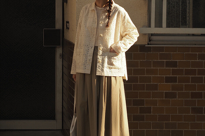 텍스처로 무늬를 드러낸 아일렛 자켓,