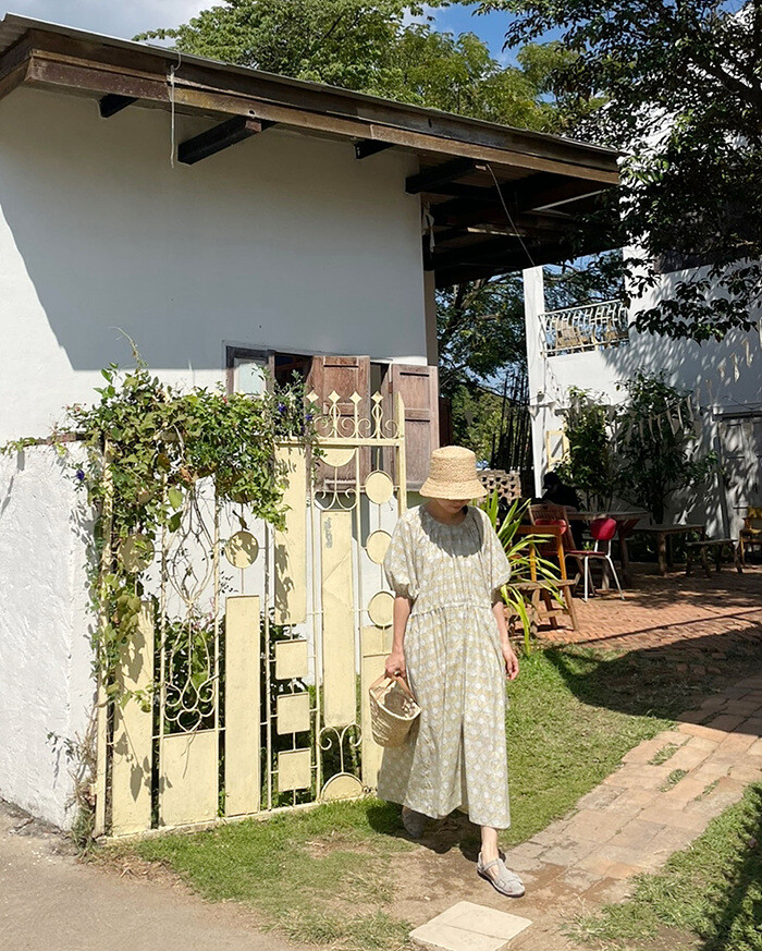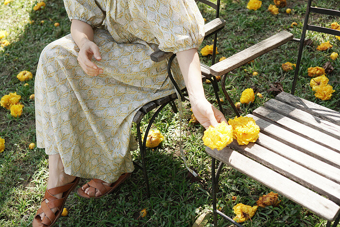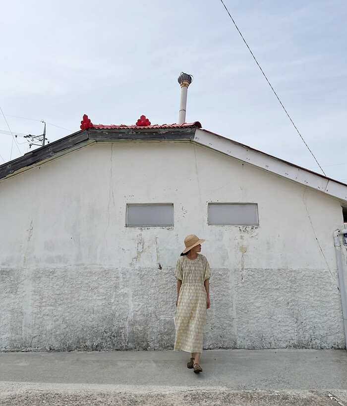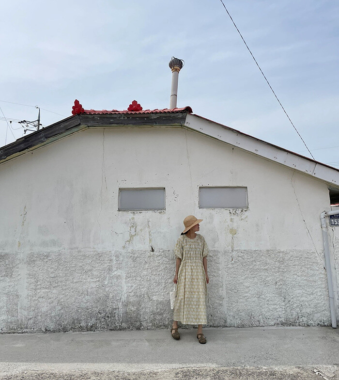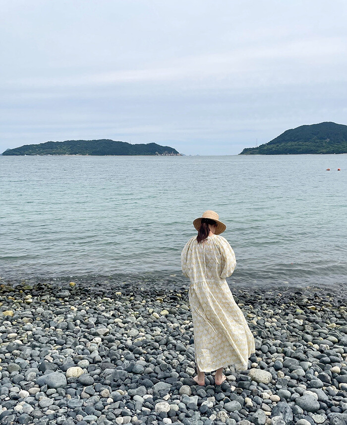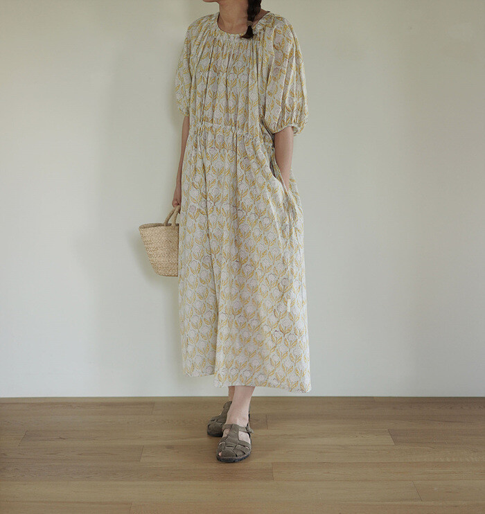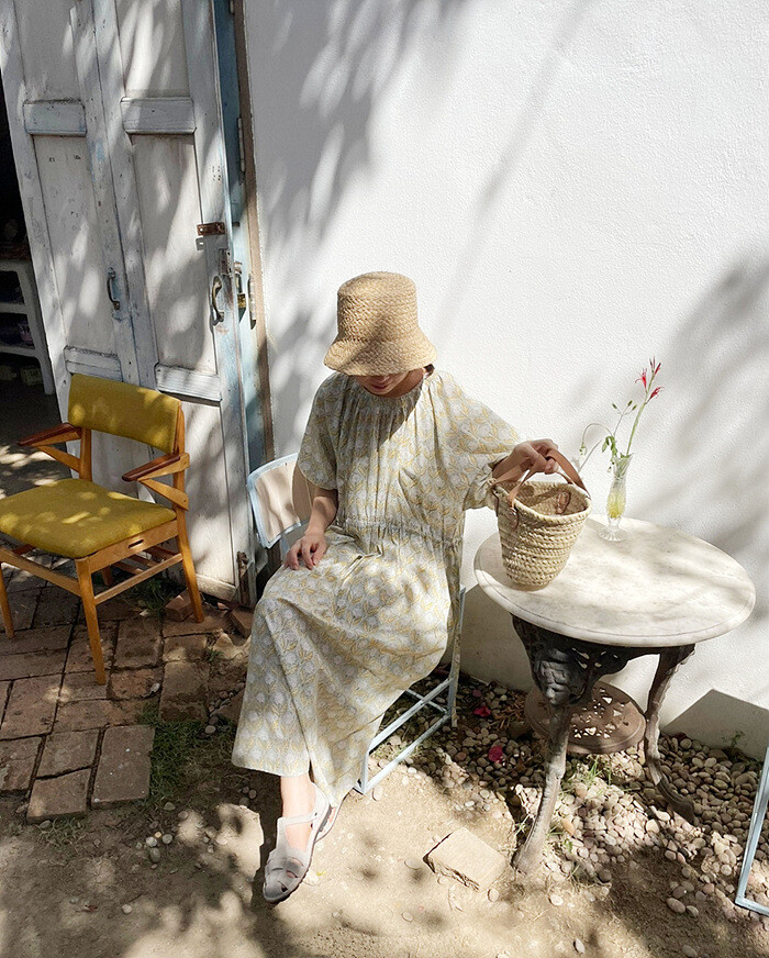 허리선을 살짝 셔링을 잡아 주어도 좋고요
