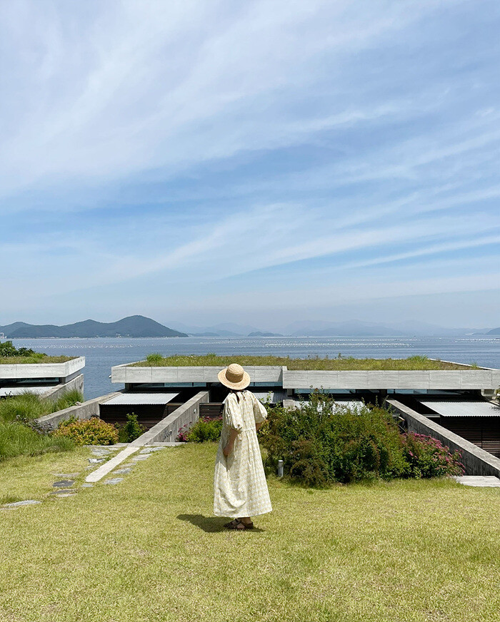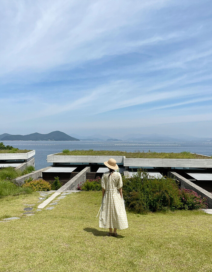 청량한 민트빛과 밝은 머스타드 컬러가 조화로운