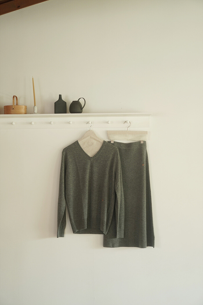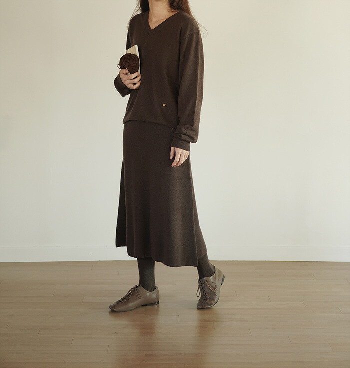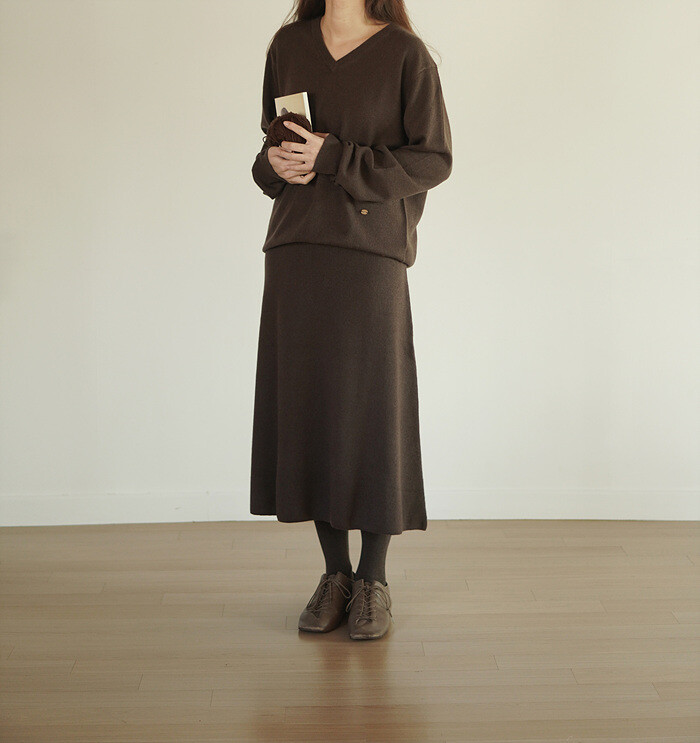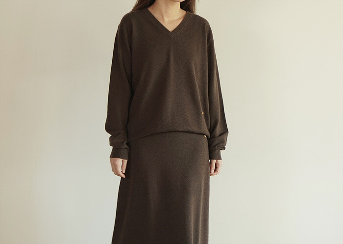 같은 실, 조직으로 짜여진 니트 스커트와 셋업으로 함께.