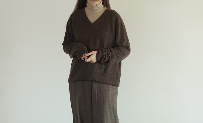 여유있는 실루엣과 사이즈의 v넥 풀오버 입니다.