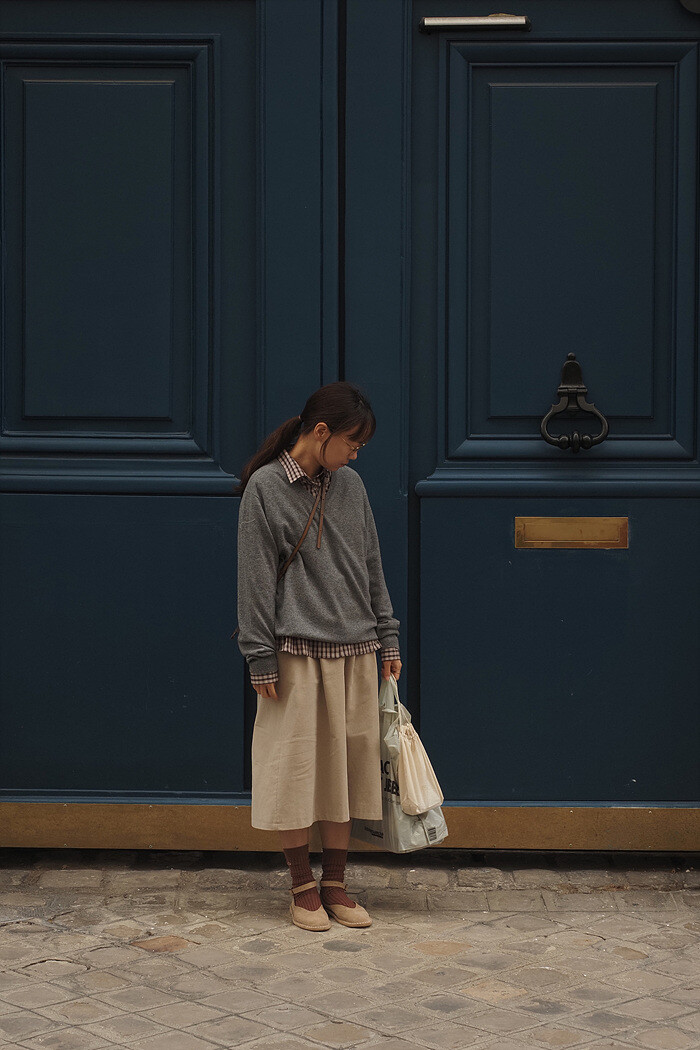 파리에서 가장 많이 입었던 v넥 니트,
