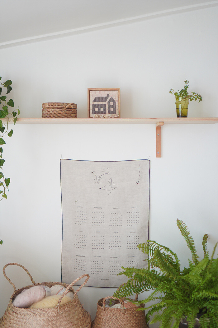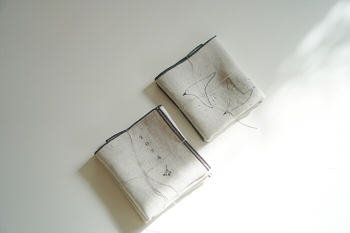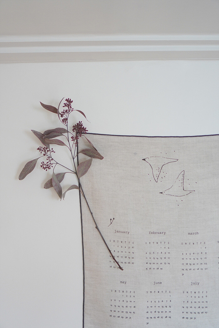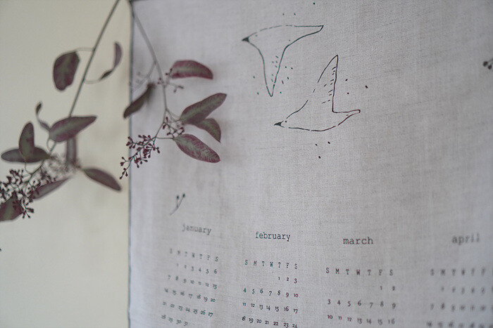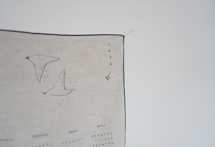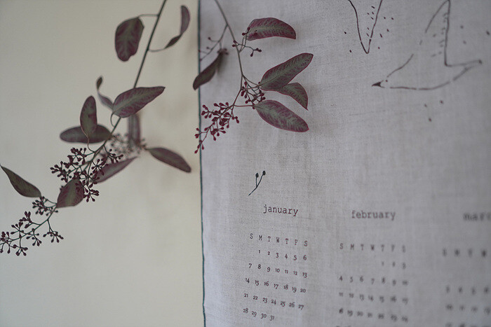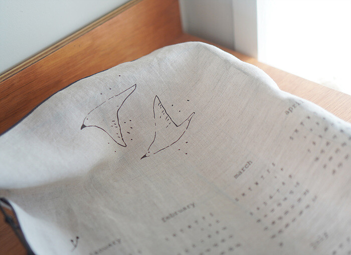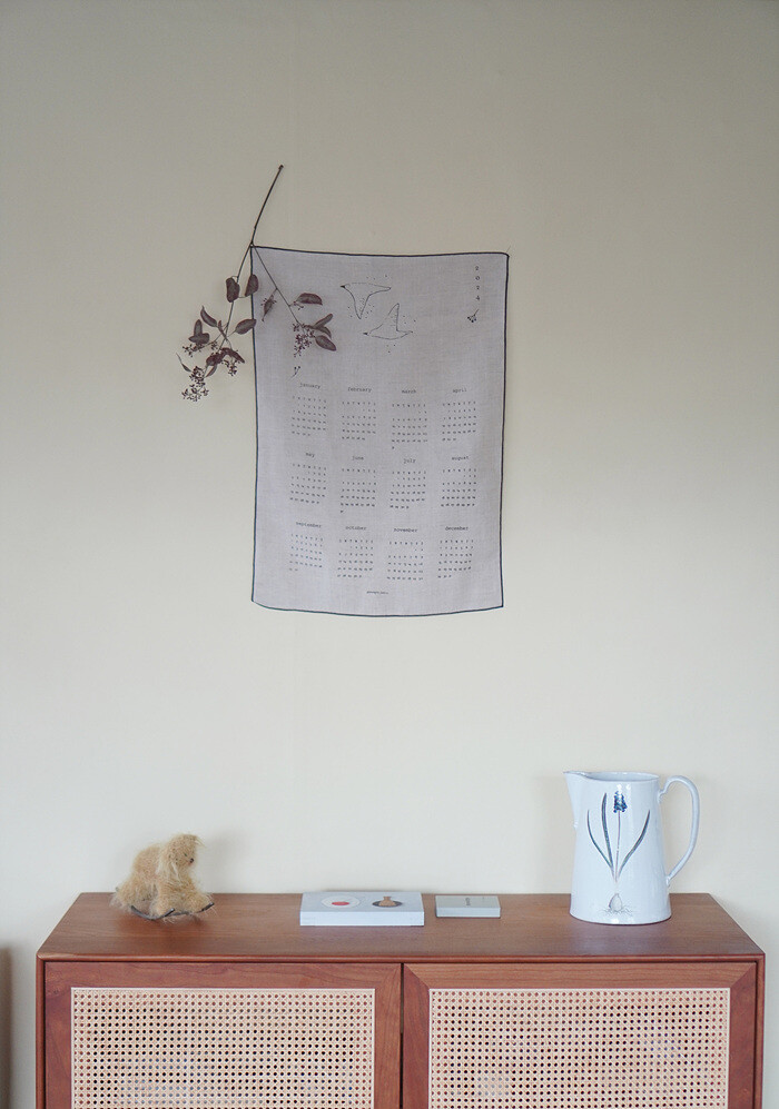 패브릭 달력은 얇은 끈으로 묶은 후,