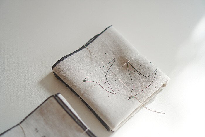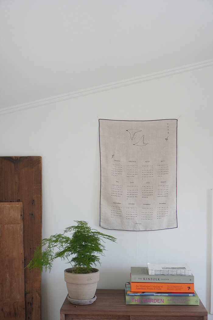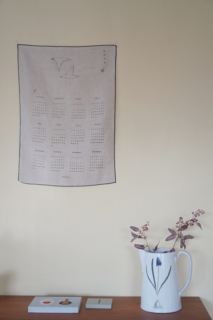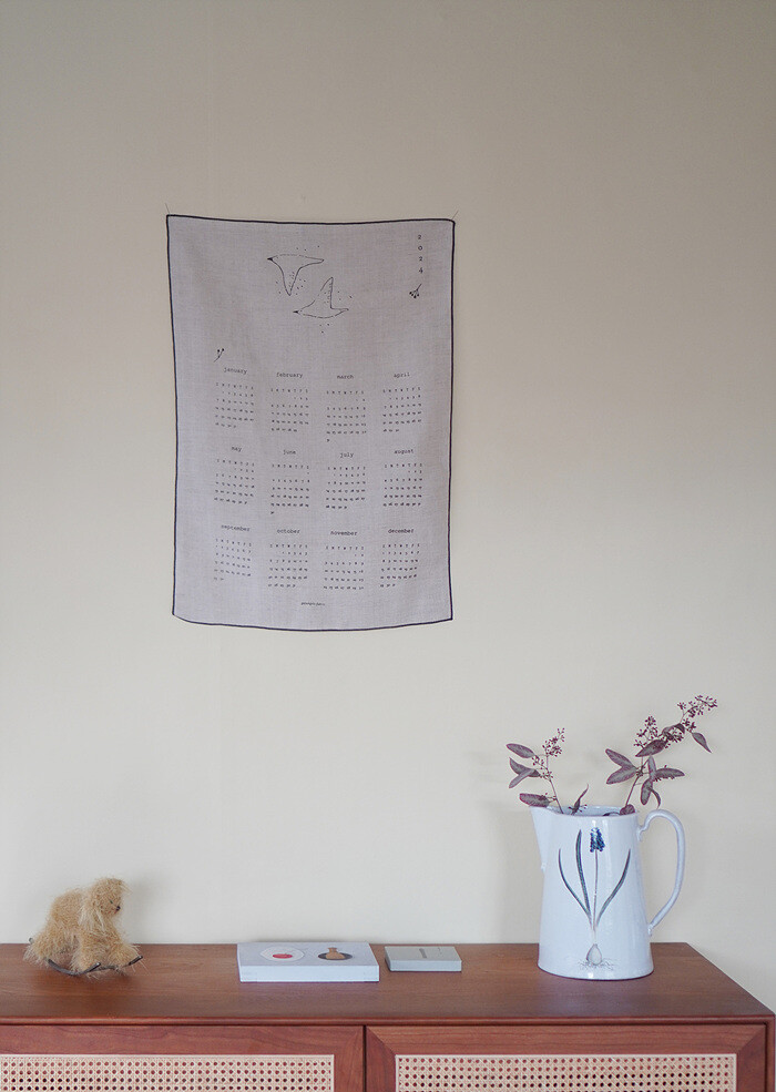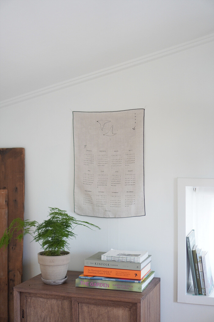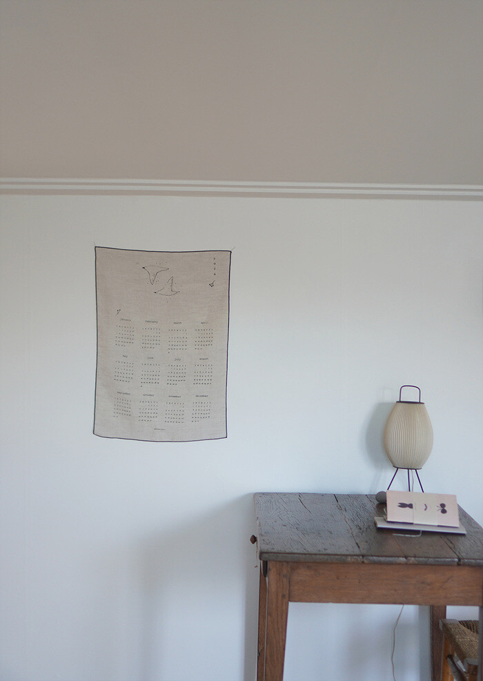 패브릭 달력은 얇은 끈으로 묶은 후,